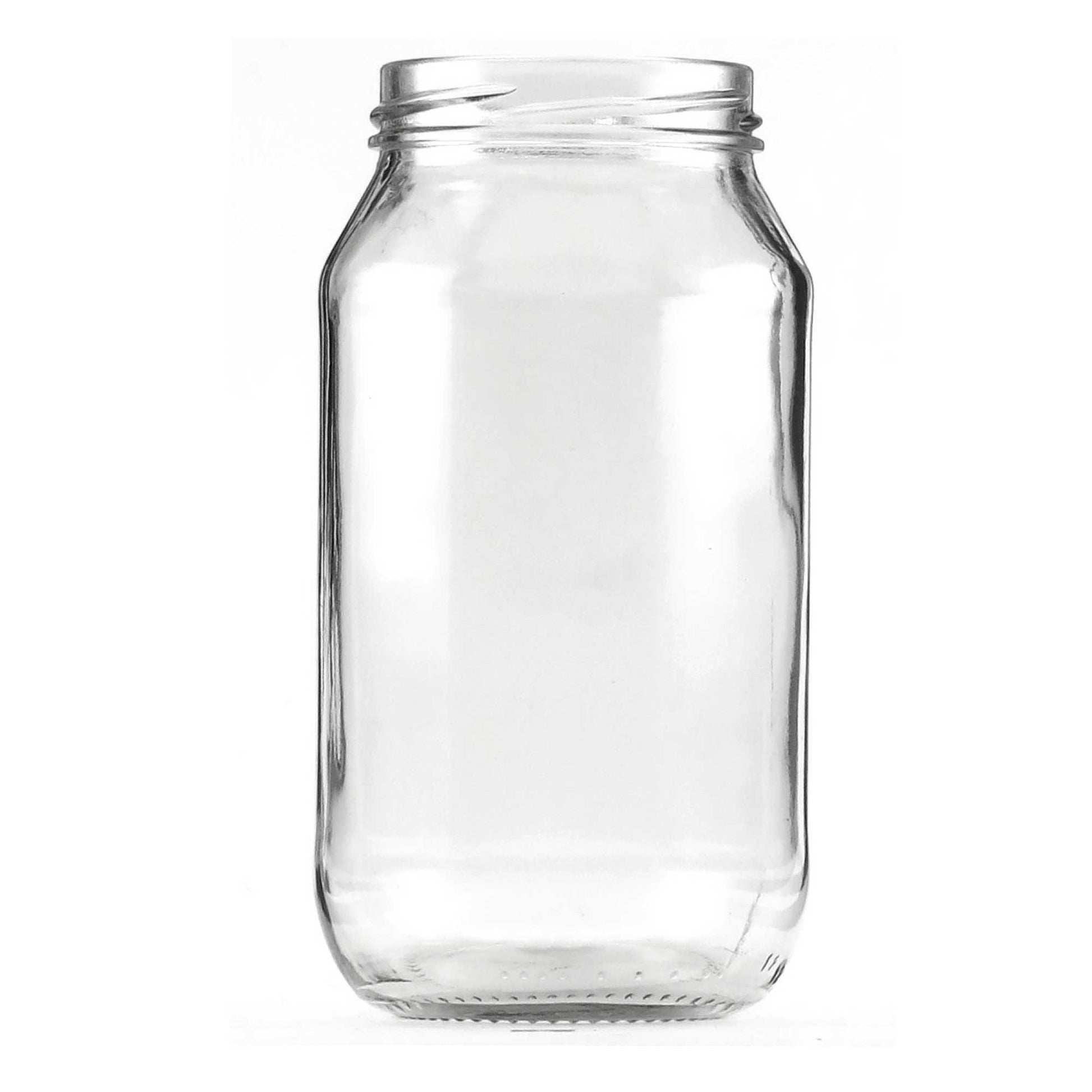 Empty 750ml Round Flint Glass Jars with black metal twist finish lids. Commonly used for food products, preserving, packaging, wedding favours or vases due to their wide neck finish. The closure has a puff compound for high acid resistance and can be used for cold or hot fill, either hand or machine applied.