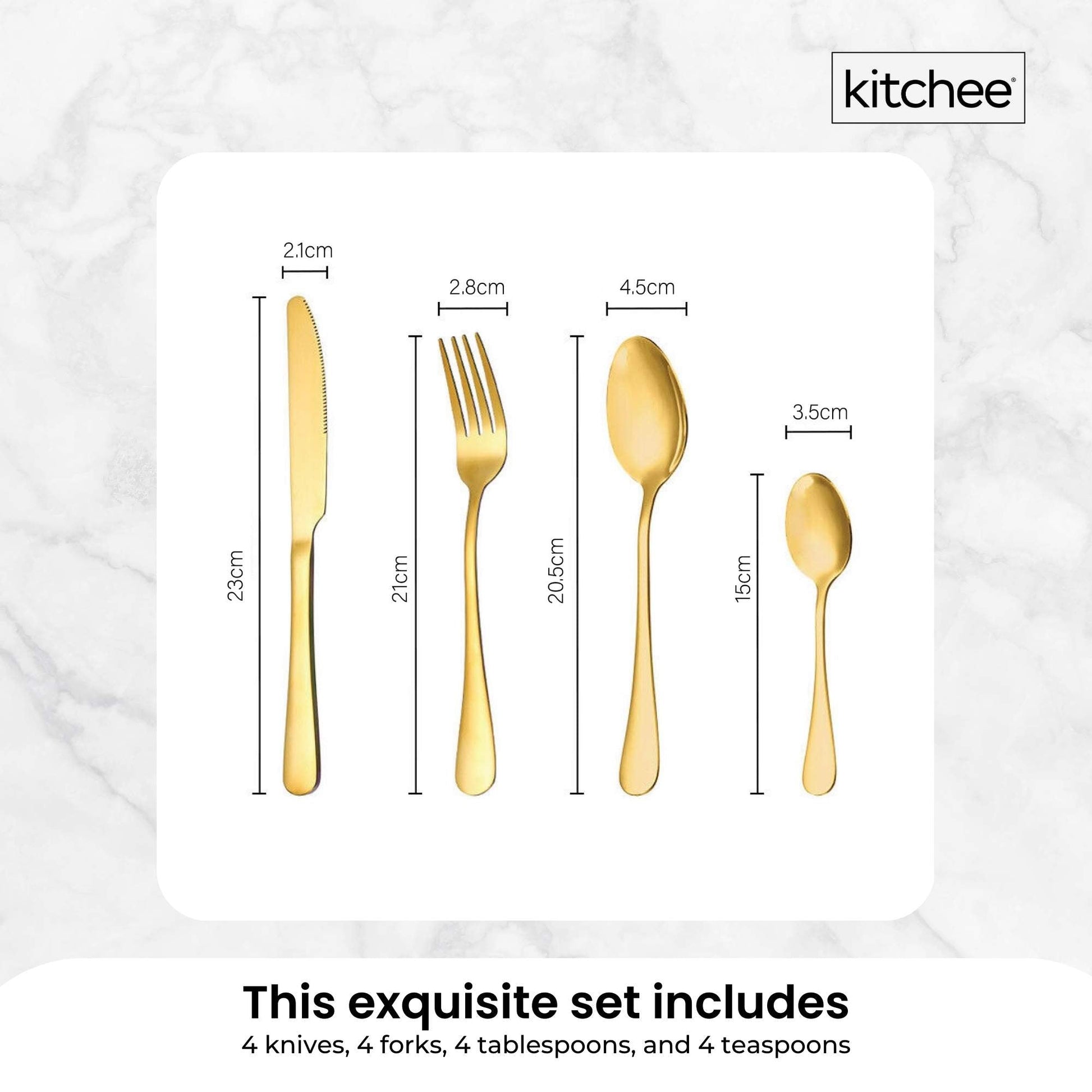 16 Piece Gold Cutlery Set - Stainless Steel Flatware Knife Fork Spoon Gift Box
