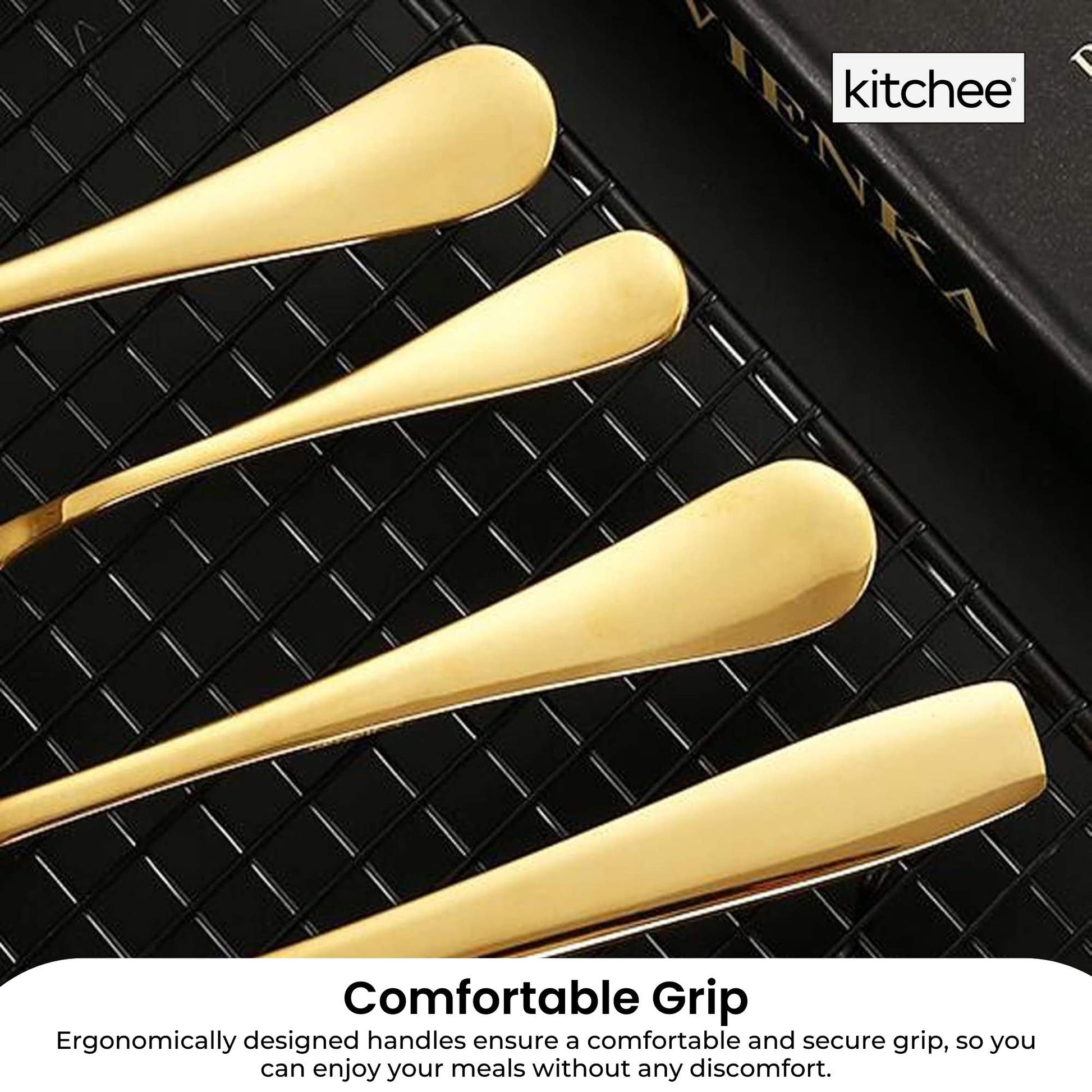 - Premium Quality: Crafted from high-quality stainless steel with a luxurious gold finish, this cutlery set is designed to last, providing both style and durability.