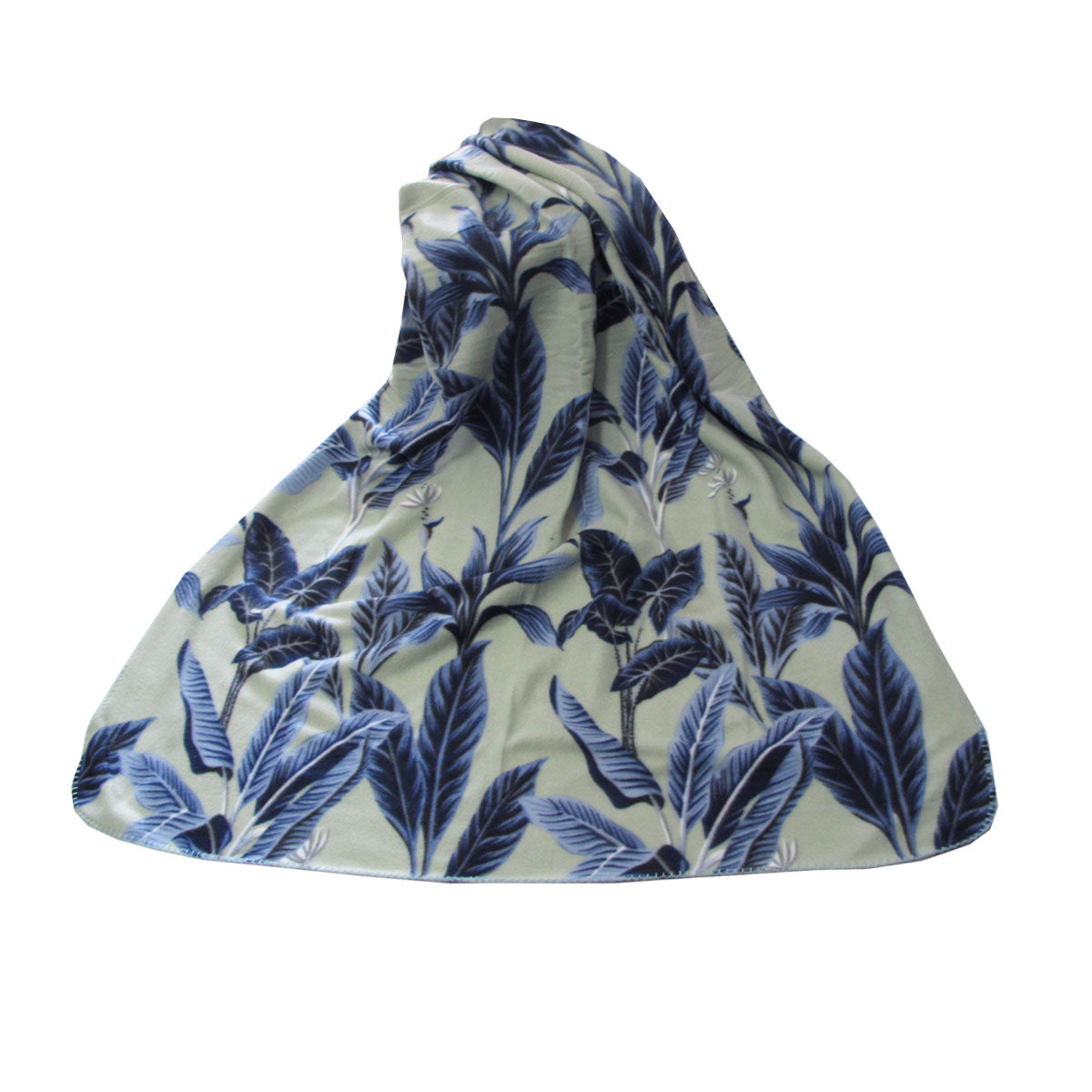 175GSM Banana Tree Leaves Printed Polar Fleece Throw Rug 120 x 150cm Sage