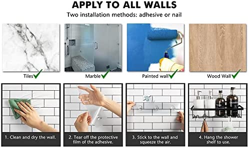 - Applicable to All Walls: We provide two installation methods: 1. Use transparent non-marking adhesive for installation, suitable for tile or glass wall. 2. Use nails for installation, we supply enough parts for installation, suitable for uneven or painted walls. The two installation methods are suitable for all walls, so you can buy it with confidence.