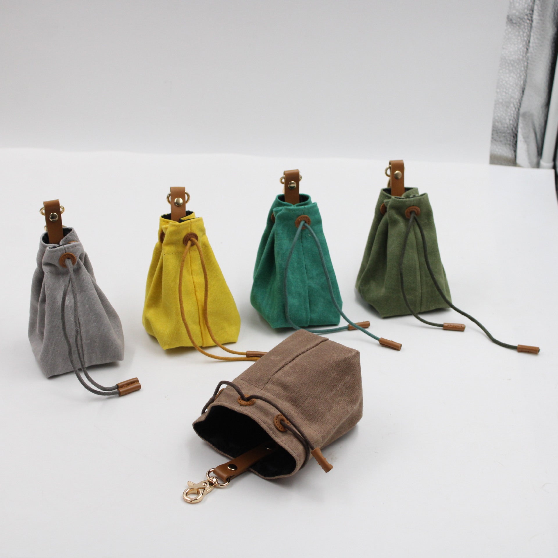 2-PCS Brown Clip-On Canvas Dog Treat Pouch - Portable Drawstring Bag for Training & Walks