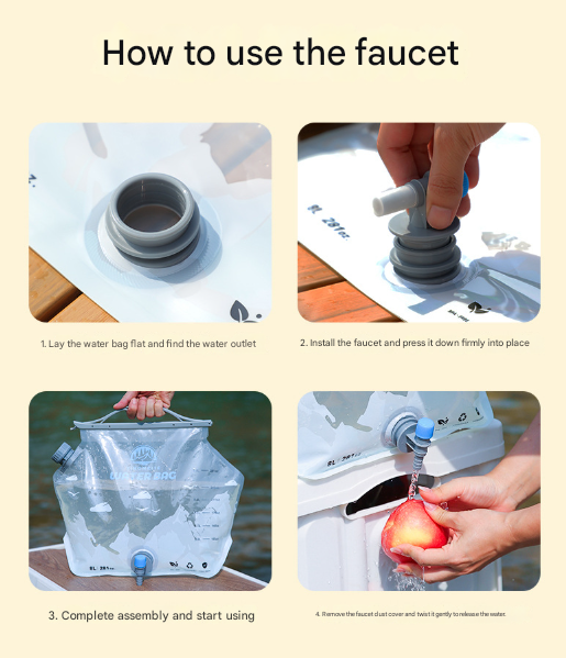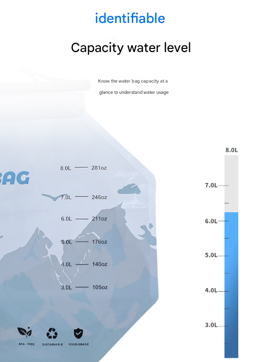 - Collapsible & Lightweight: Weighing only around 147g, this water bag folds or rolls up flat when empty, taking up minimal space in your backpack or vehicle. It is the perfect solution for portable water storage without the bulk of a rigid container.