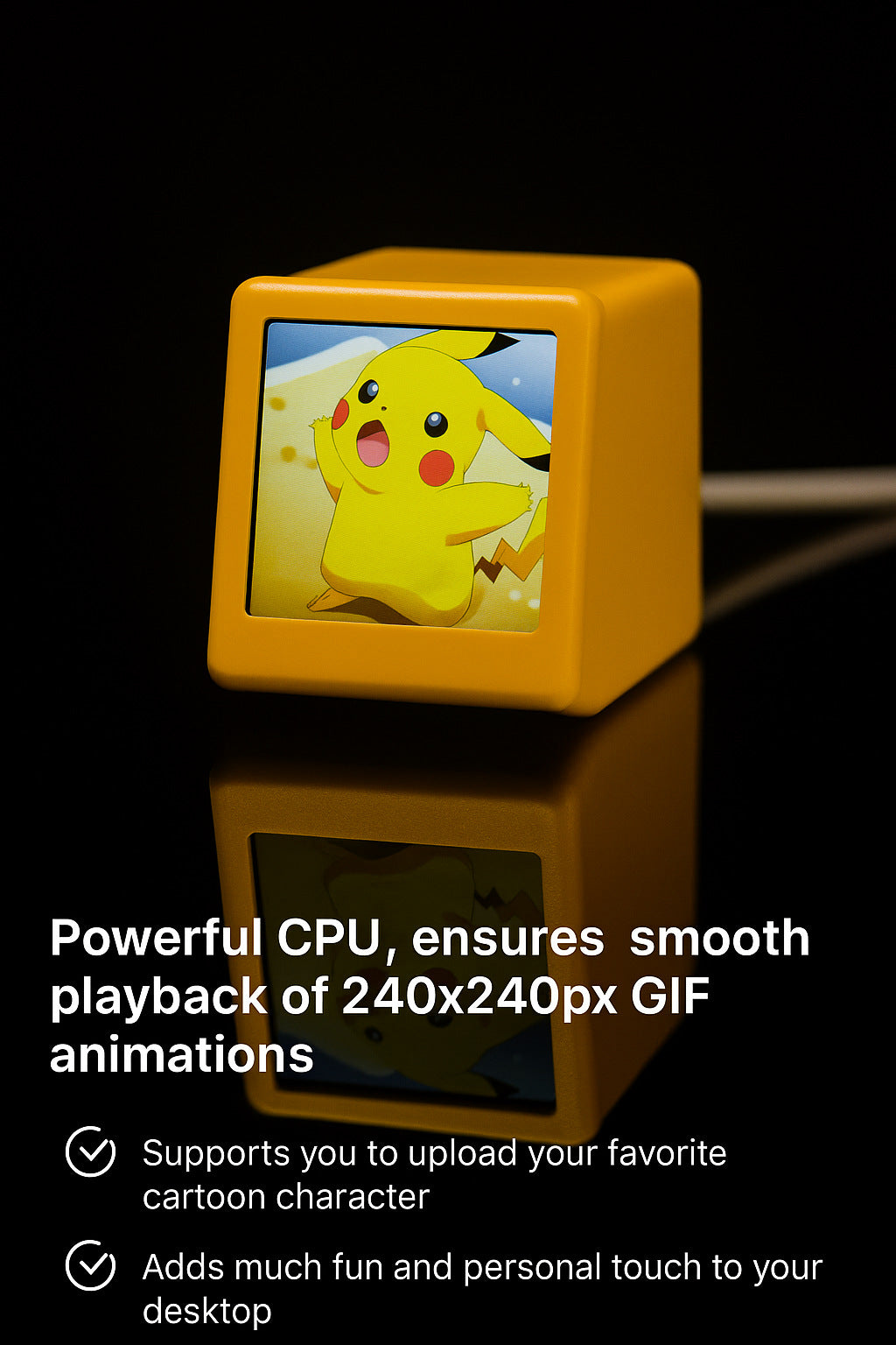 - Customizable GIF & Photo Album: Features a powerful CPU for smooth 240x240px GIF animation playback. Supports uploading your favorite character GIFs or photos to personalize your desktop.