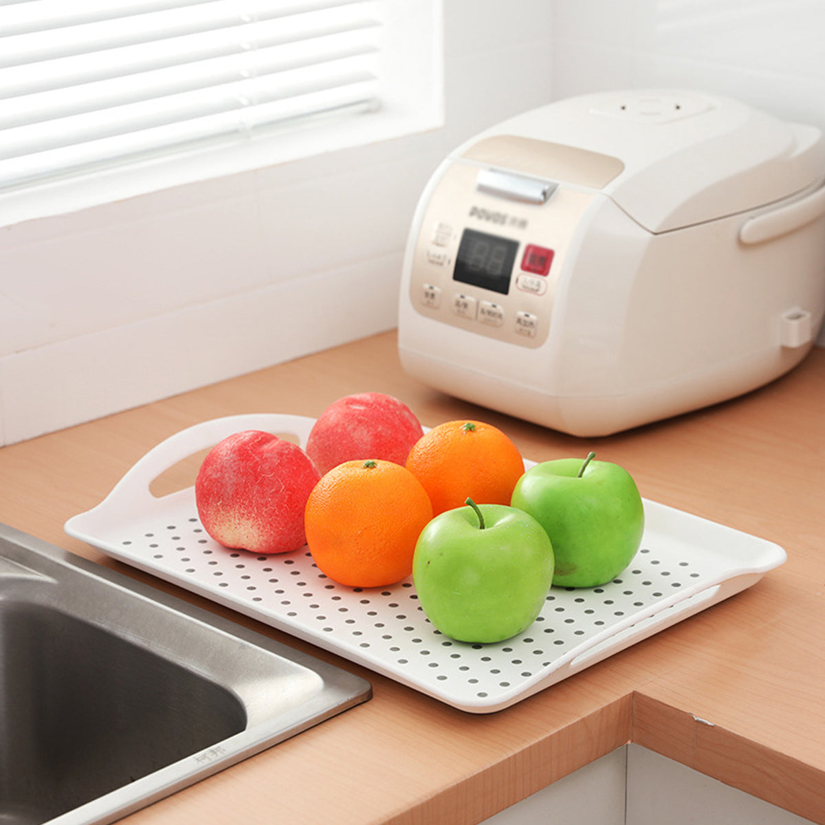 2PCS Rectangular Serving Tray Double Handle Non Slip TPR Kitchen Display Plate
