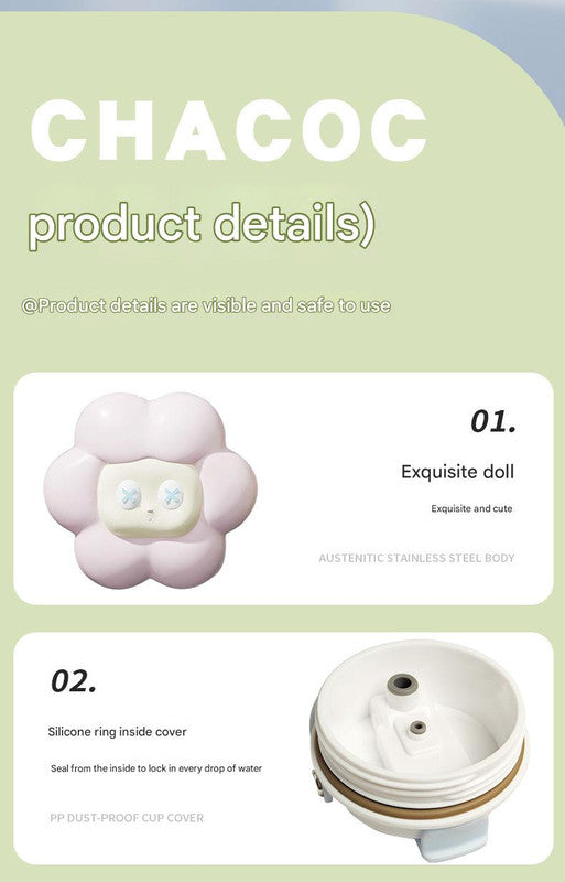 This tumbler comes with a convenient handle for easy carrying and a dust-proof lid to keep your drink clean. The adorable cloud-shaped accessory adds a playful touch, while the silicone non-slip base ensures stability on any surface. Made with PP material for the lid, this tumbler is lightweight, durable, and designed for everyday use, combining practicality with a charming aesthetic.