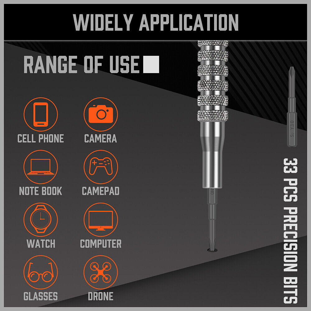 33 PC PRECISION SCREWDRIVER SET BITS PHILIP FLAT SLOTTED TORX HEX ELECTRONIC FIX