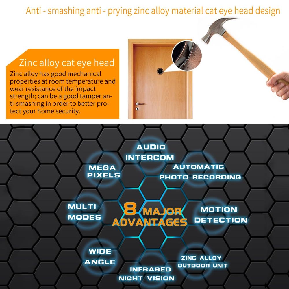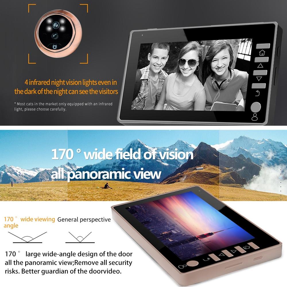 • 1 x 4.5 Inch Screen 3.0Mp Security Camera No Disturb Peephole Viewer Support Tf Card / Night Vision / Video Recording / Motion Detection