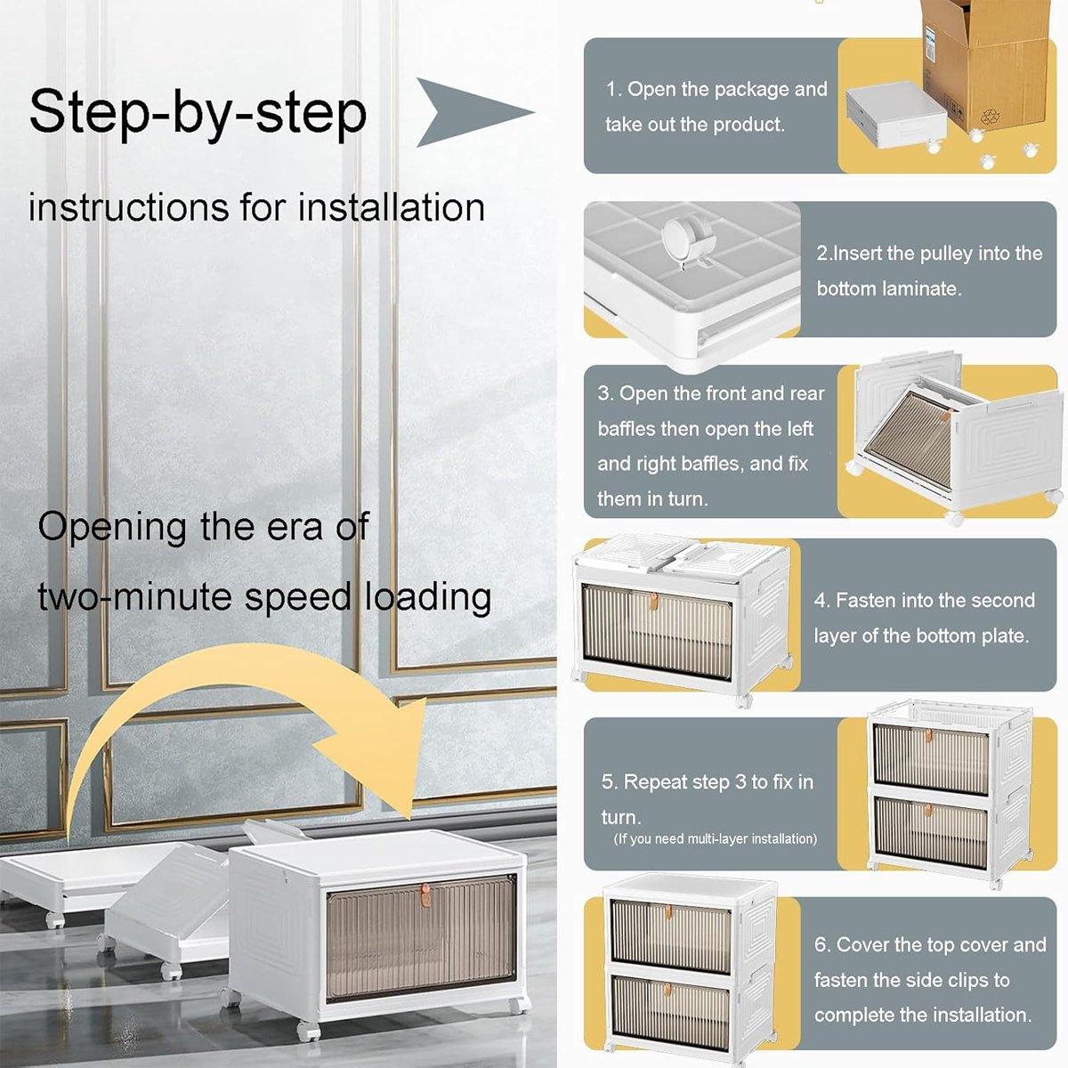 4 Tier Plastic Storage Cabinet with Wheels Large Capacity Foldable Storage Bins