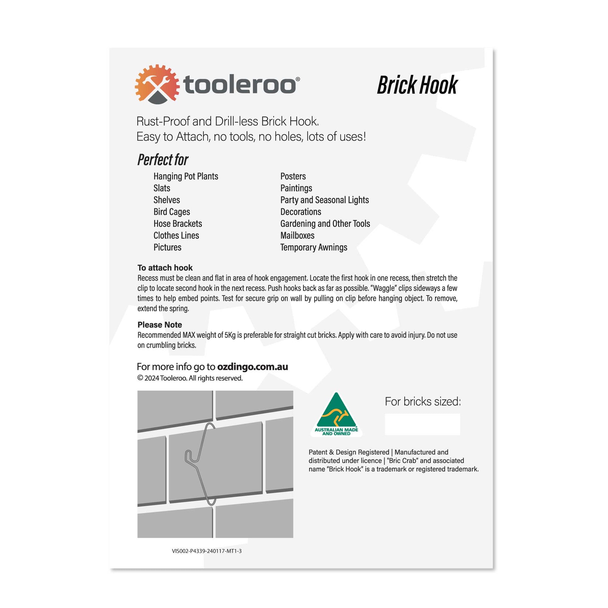 - Fits Standard Australian Bricks: 120mm