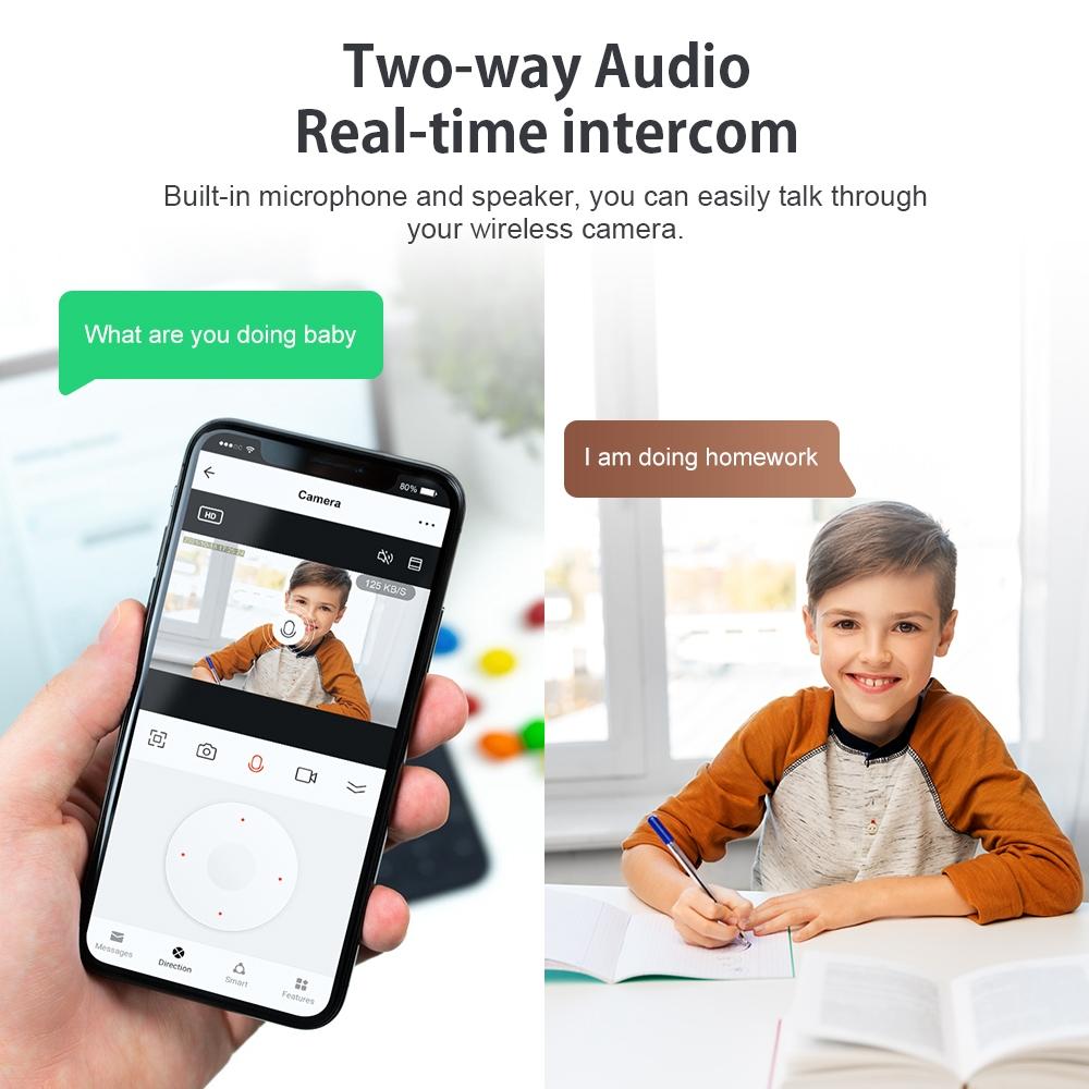 • Two-way audio intercom for easy communication through the wireless camera.