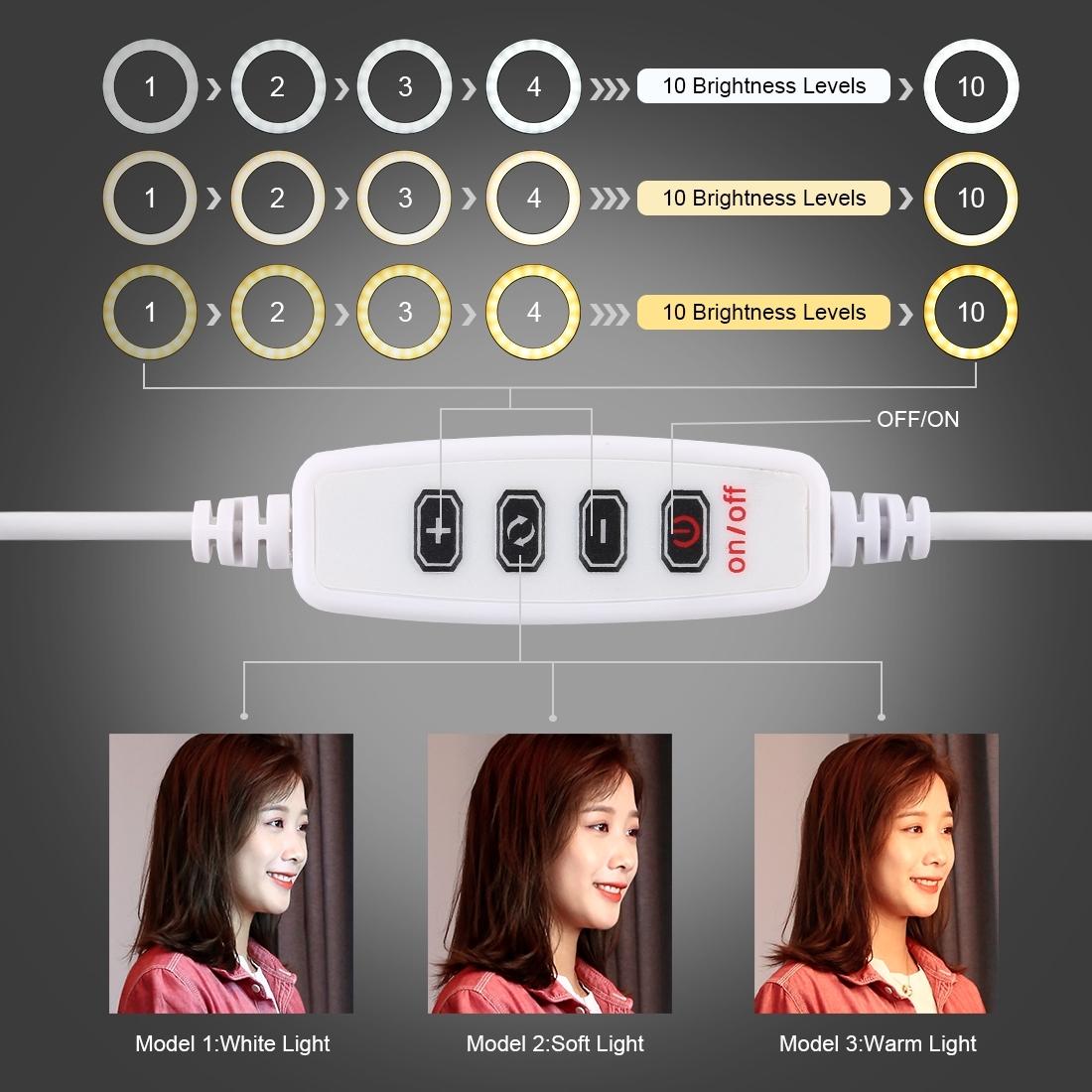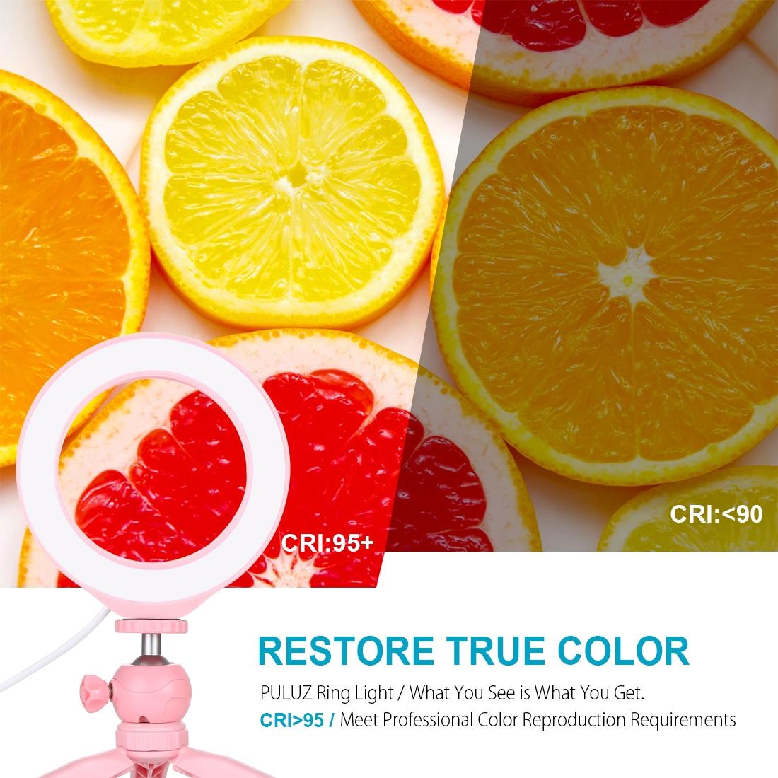 6.2 Led Ring Light with Usb 3 Modes Dimmable Cold Shoe Tripod Mount - Pink