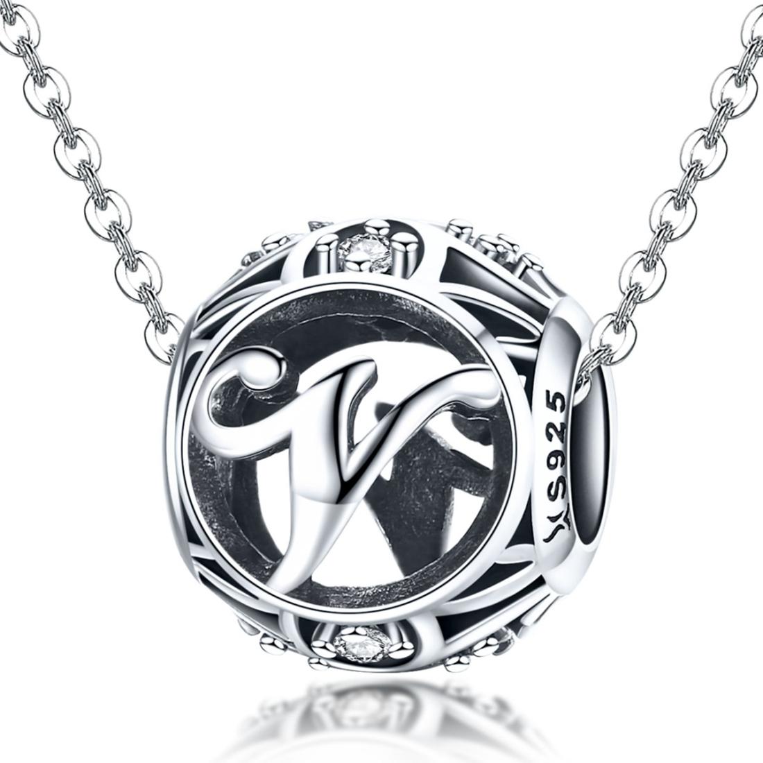 • 1 x 925 Sterling Silver 26 English Letter Beads For Diy Bracelets Necklaces Style - V