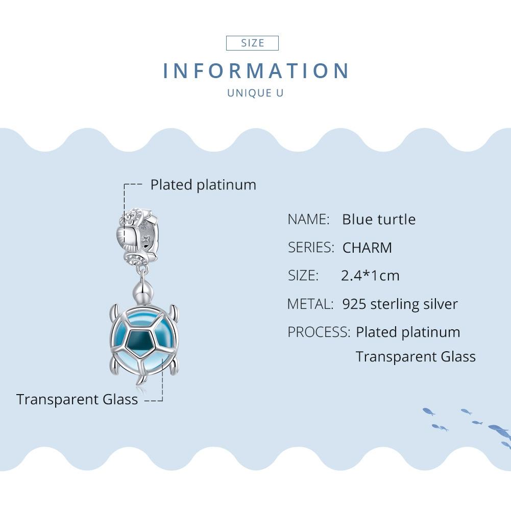 925 Sterling Silver Blue Turtle Pendant For Diy Bracelets & Necklaces