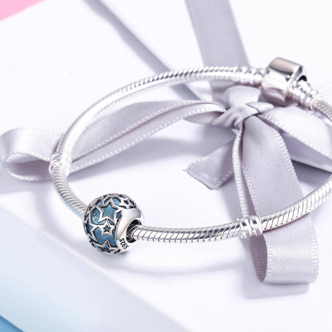 • 1 x 925 Sterling Silver Starry Sky Beads For Diy Bracelets Necklaces