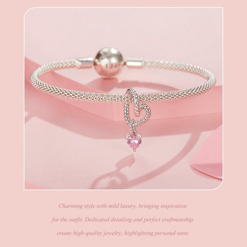 925 Sterling Silver Twisted Rope Heart Pendant Beads