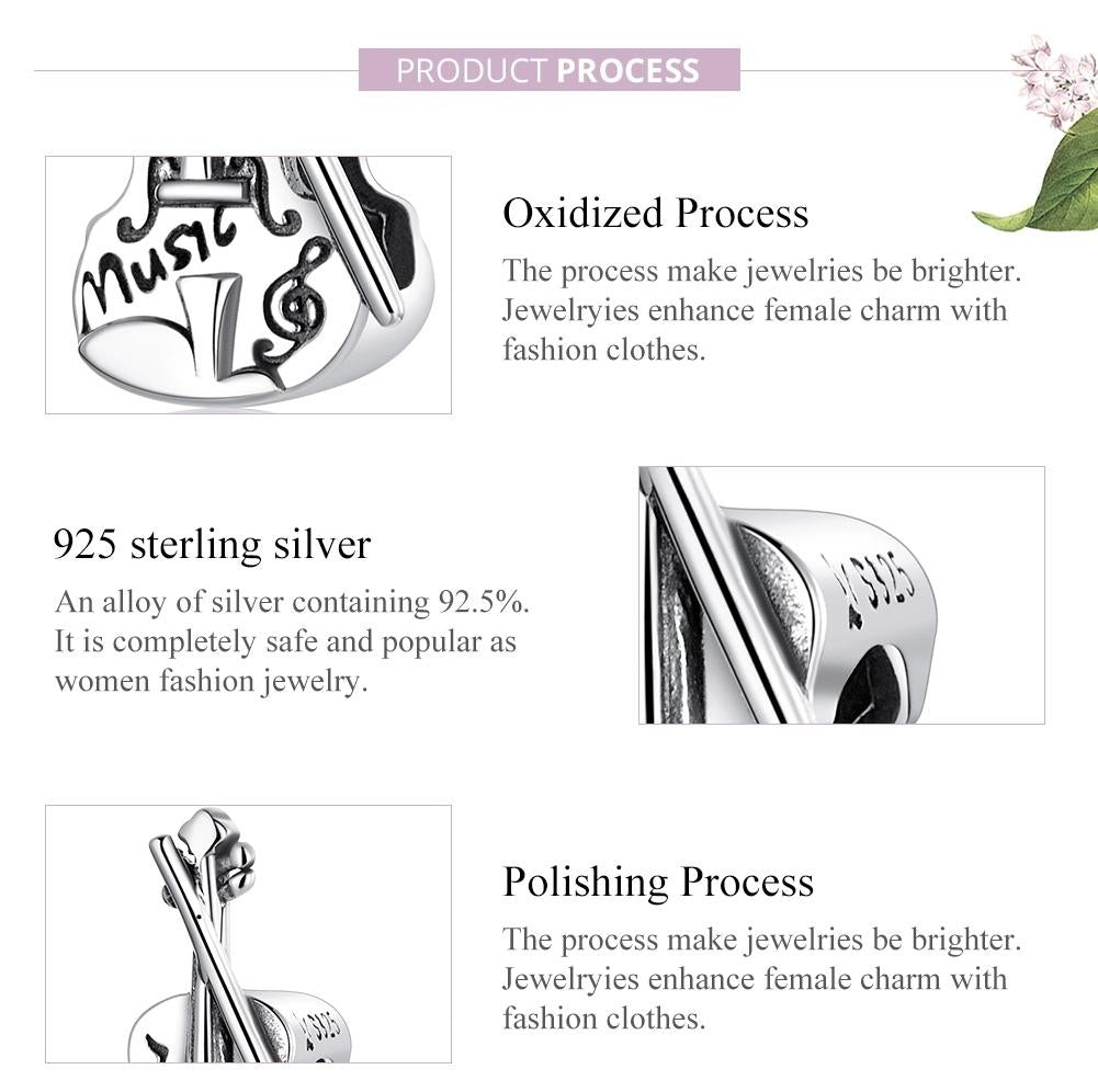925 Sterling Silver Vintage Violin Beads For Diy Bracelets & Necklaces