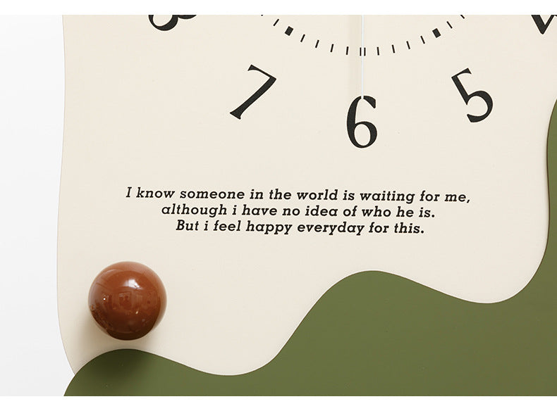 Add a touch of modern artistry to your space with this unique Abstract Wall Clock. Featuring a creative, irregular wavy design, this clock is more than just a time-telling device; it's a piece of decorative art. The clock face is adorned with a thoughtful quote, adding a touch of inspiration to your day. A smooth, colored ceramic ball provides a delicate and warm accent, enhancing the clock's overall aesthetic. Its silent, non-ticking movement ensures a peaceful environment, making it perfect for living rooms, bedrooms, offices, or any space that could use a stylish and tranquil touch. With its simple two-step installation, you can easily elevate your decor.
