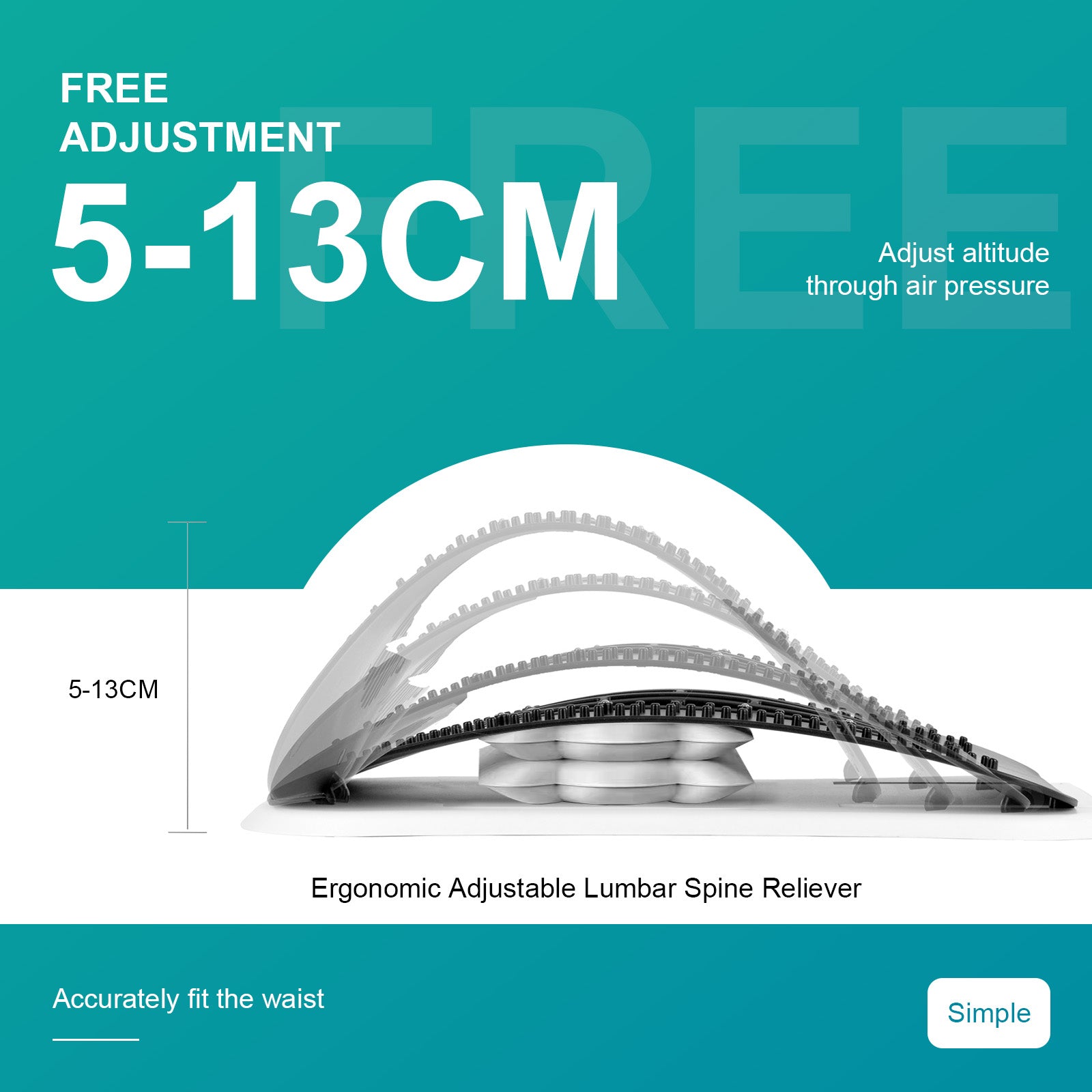 Enhance spine alignment and posture with the Adjustable Air Lumbar Spine Reliever, designed to gently stretch the lower back, relieve tension, and support recovery from prolonged sitting or poor posture. Equipped with adjustable air pressure, acupressure bumps, and magnets, it's an effective tool for lumbar pain relief at home.