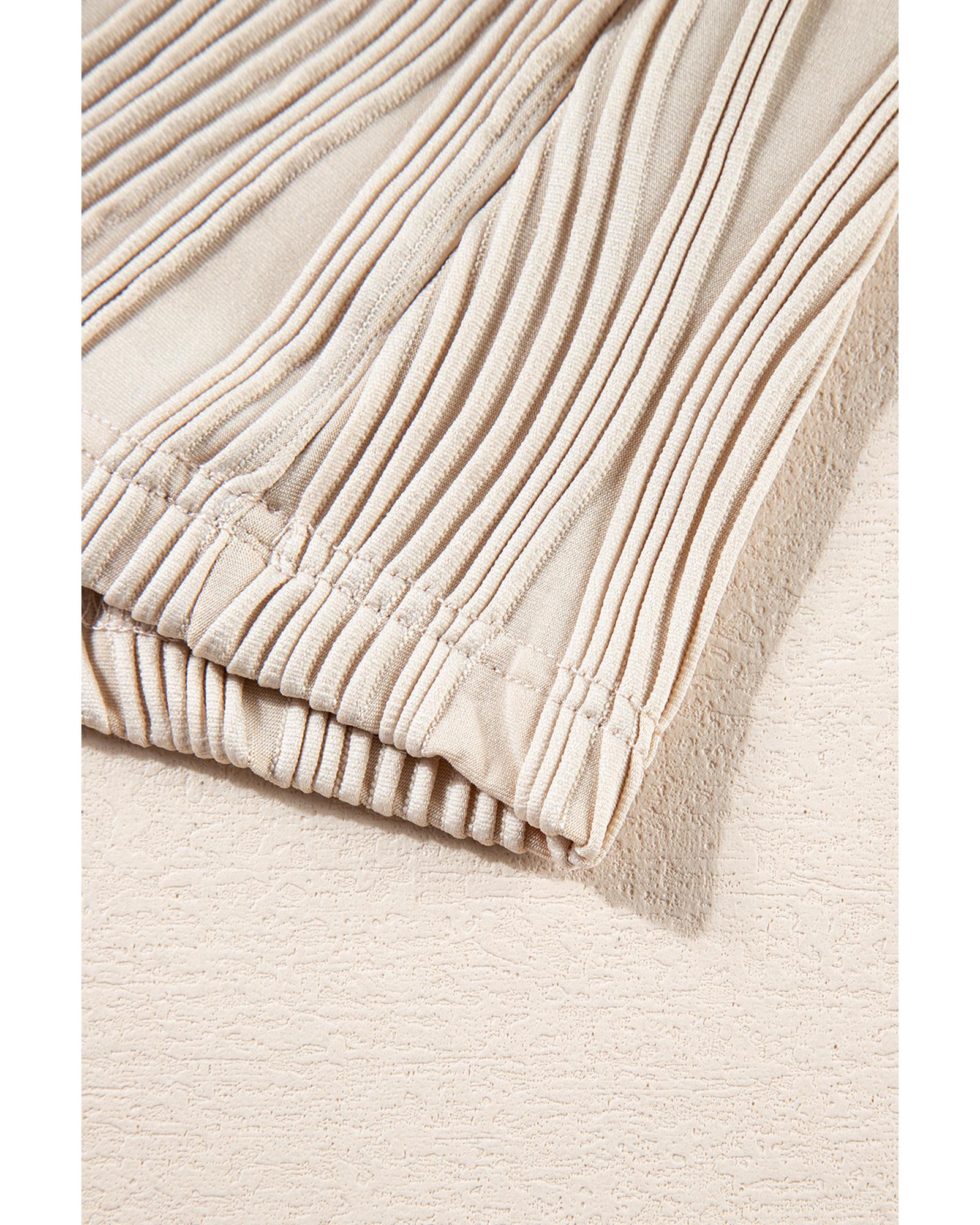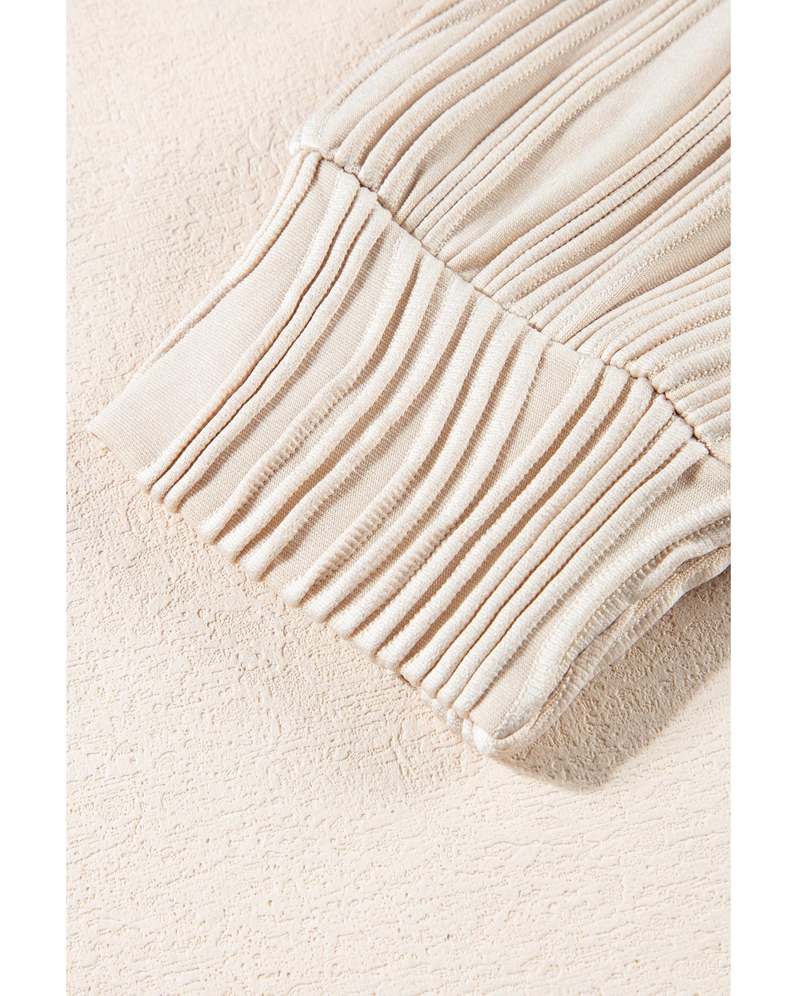 - Apricot Textured Wavy Round Neck Long Sleeve Top