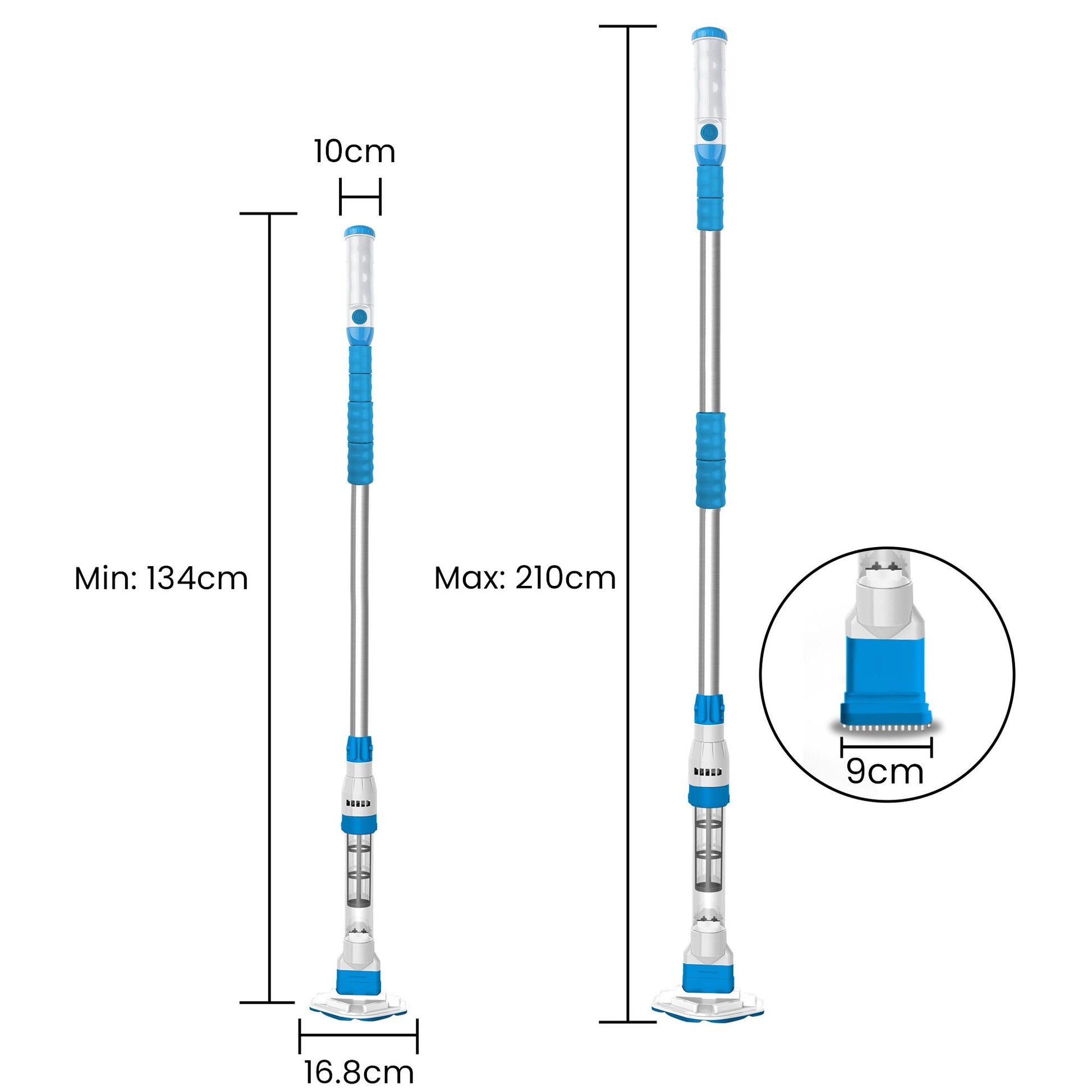 With two vacuum heads included, the Aquajack 217 is suited for various pool surfaces. It comes with three rechargeable batteries for uninterrupted use and a two-piece telescoping handle for deeper pools. Plus, it works for up to 60 minutes on just a single charge!
