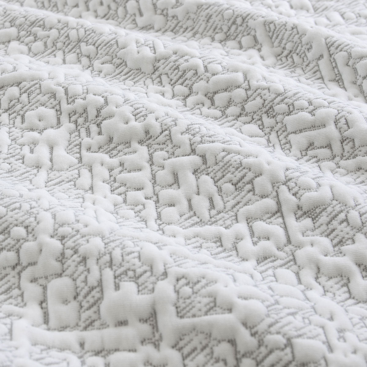 Make a subtle statement with Norfolk White 3 Pcs Embossed Jacquard Comforter Set Queen/King by Ardor. Norfolk's neutral tones paired with a plain antique white reverse will compliment rustic aesthetics bringing an abundance of warmth to your winter abode. It features embossed/quilted pattern in charcoal, grey, silver, and white colour tones. It is made from quality and easy care polyester fabric and polyester for a relaxing sleep all night long.