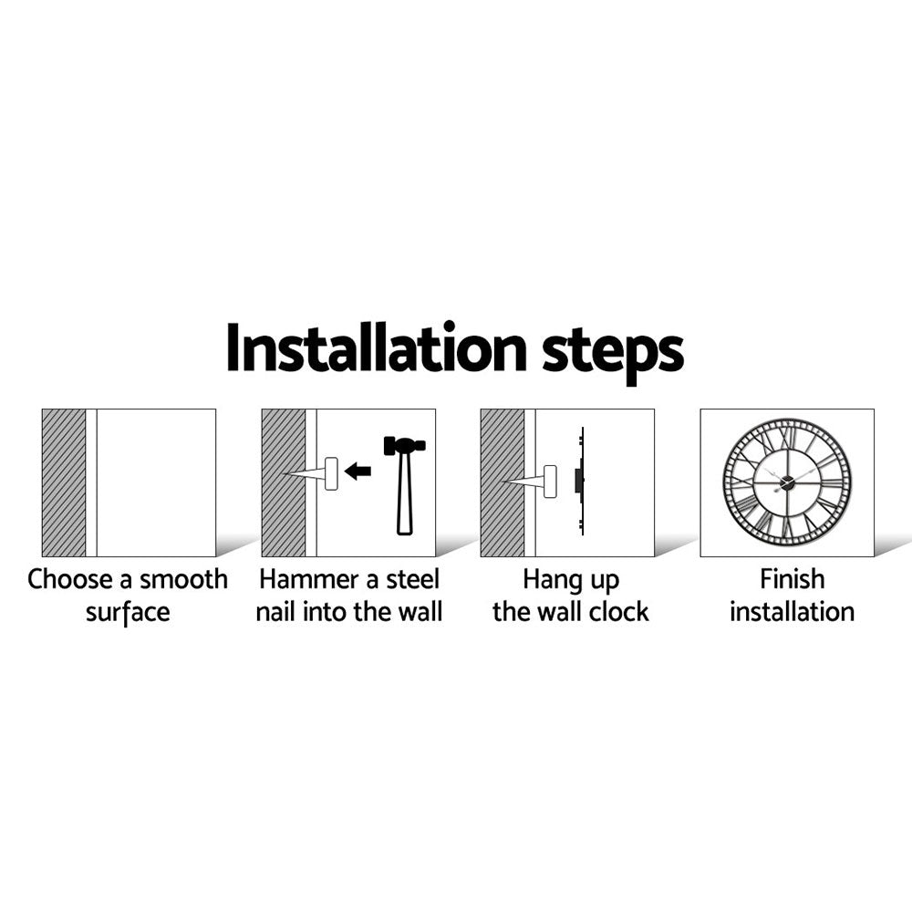 Artiss 80cm Wall Clock Large Roman Numerals Metal Black