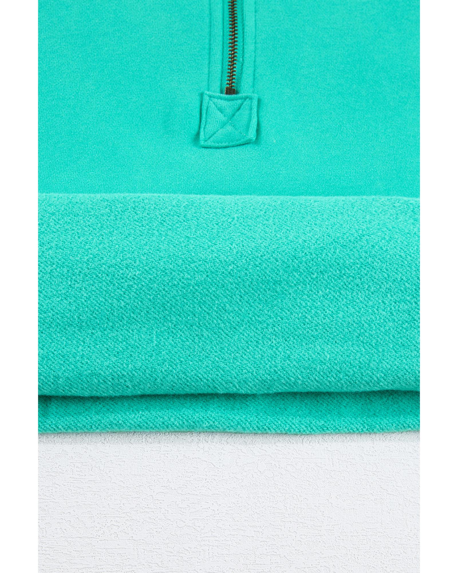 - Aruba Blue Fleece Lined Half Zipper Kangaroo Pockets Loose Hoodie