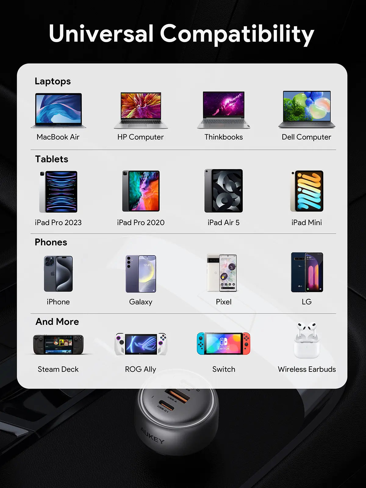 - 66W total output for fast, efficient charging