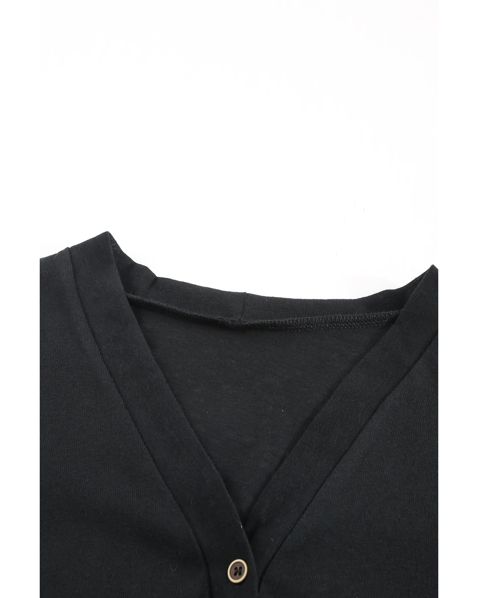 Azura Exchange Black Solid Color Open-Front Buttons Cardigan - S