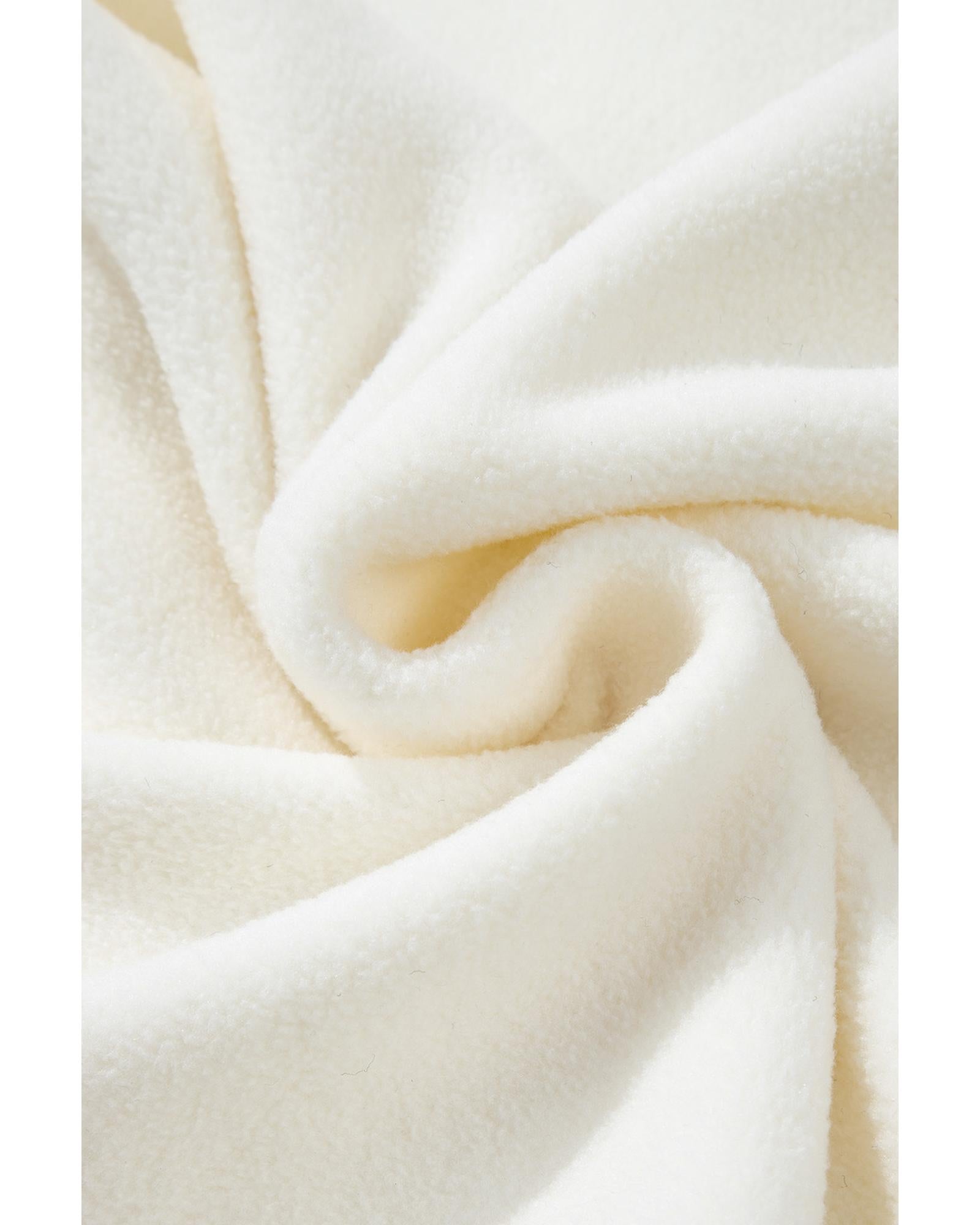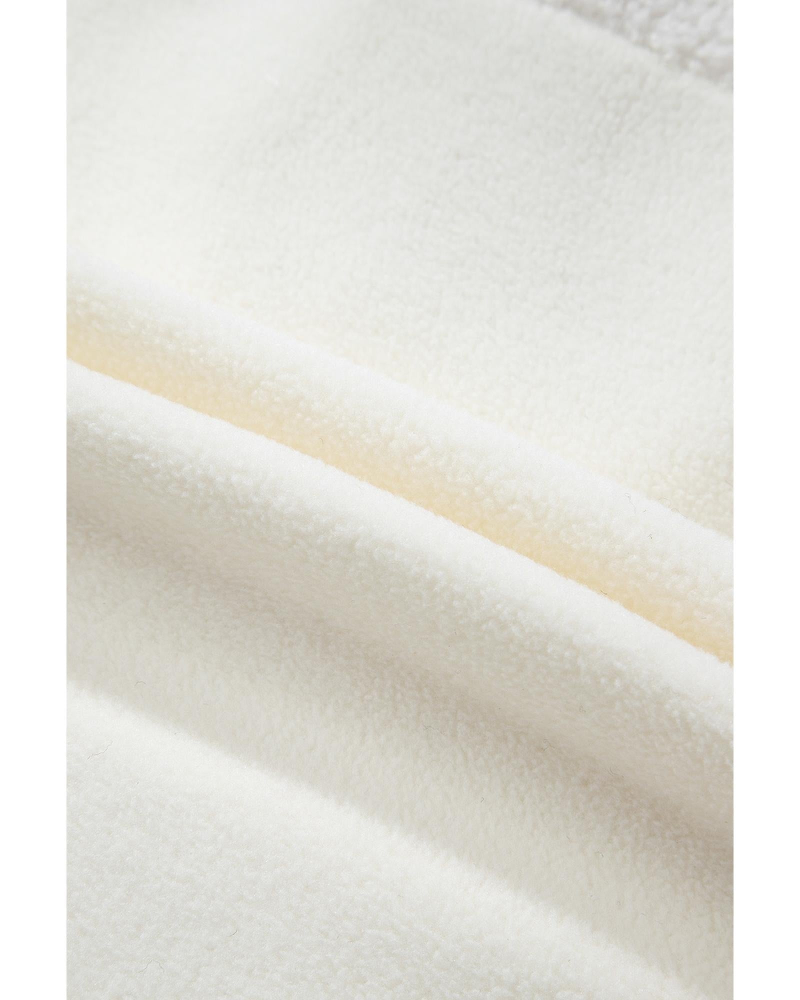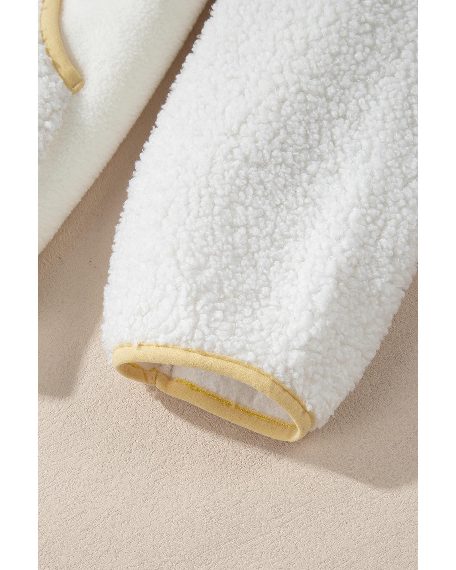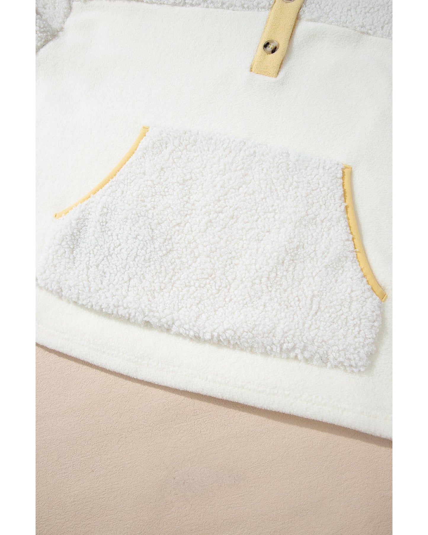 Beige Fleece Colorblock Trim Buttons Collar Sweatshirt with Pocket - XL