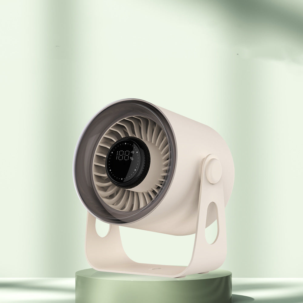 Beige Modern Desktop Fan with Adjustable Angle and Digital Display