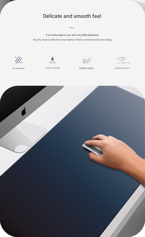 Upgrade your workspace with the Premium Large Silicone Mouse Pad, designed for both office productivity and gaming precision. Measuring 600x300mm, this oversized pad accommodates your mouse and keyboard comfortably, making it ideal for extended use. The eye-catching gradient color design transitions from blue to black, adding a modern touch to any desk setup. Crafted with a non-slip silicone base, it stays firmly in place during intense gaming sessions or busy workdays. The smooth milk silk surface ensures accurate mouse tracking, while the odorless, durable silicone construction provides long-lasting performance. With a 5mm thickness and 400g weight, this pad offers excellent comfort and stability.