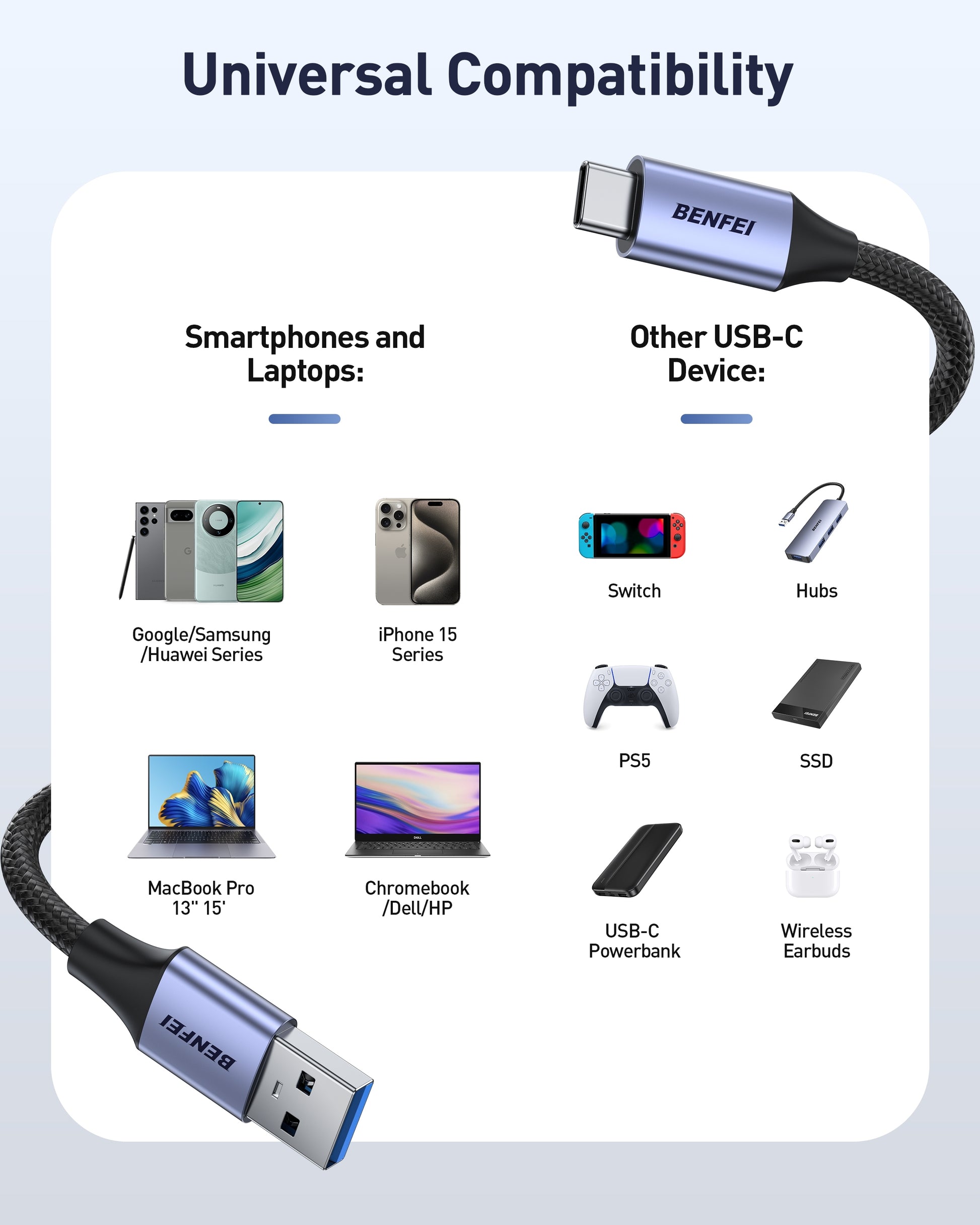Supports USB 3.0 high-speed data transfer up to 5Gbps10x faster than USB 2.0. Ideal for quickly moving large files between computers, external hard drives, smartphones, and other devices.