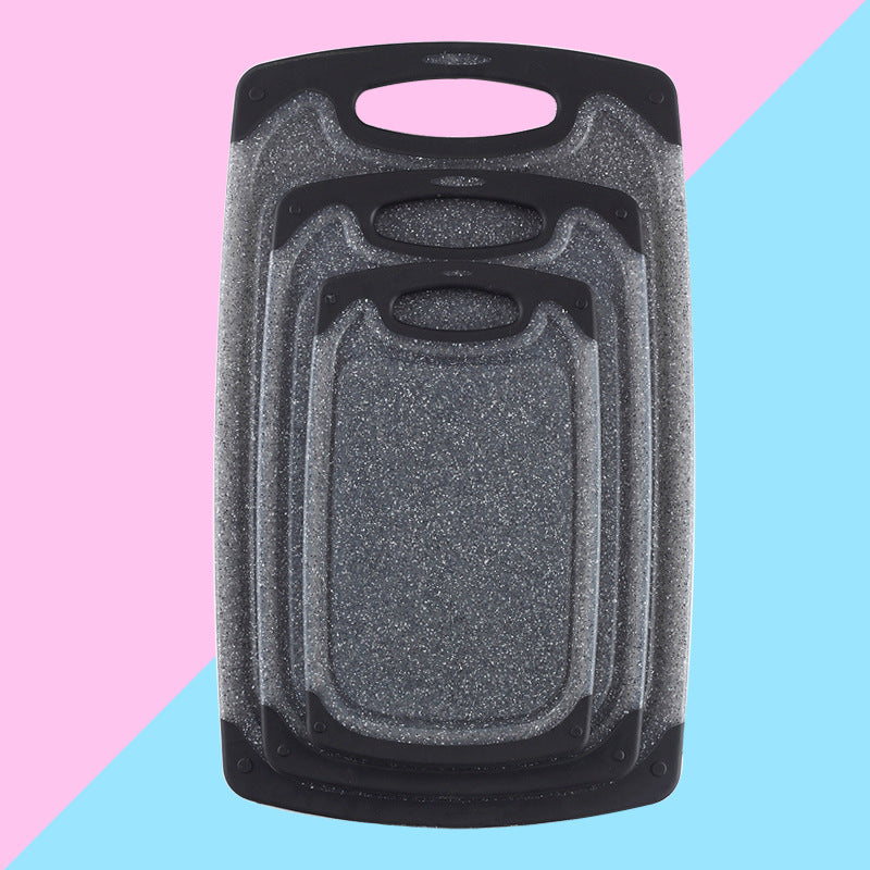 Black 3-Piece Marble Pattern Cutting Board Set – Non-slip PP Plastic, Hanging Design, Kitchen Knife Chopping Board for Vegetable and Meat Prep