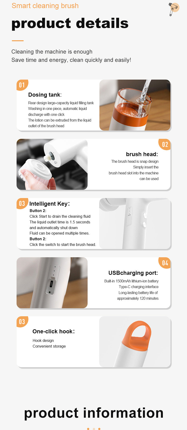 - Ergonomic & User-Friendly Design: Lightweight (approximately 540g) with an ergonomically designed handle for a comfortable and secure grip, reducing hand fatigue. Simple two-button operation: one for activating the brush rotation and another for dispensing liquid. Includes a handy hanging loop for easy storage.