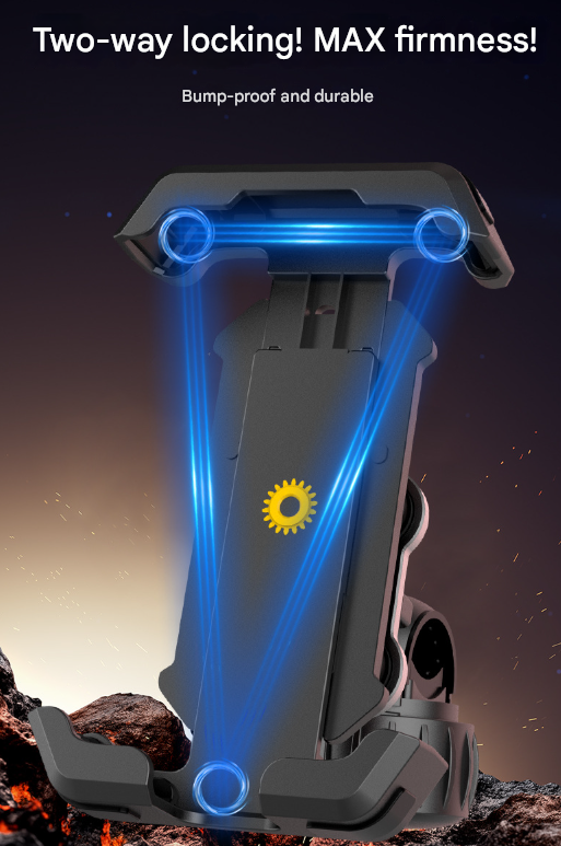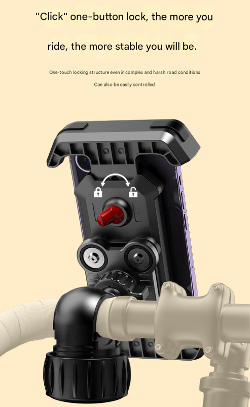 - One-Key Secure Lock: Forget flimsy grips. This mount features a robust mechanical lock that you can engage with a simple switch. Once locked, your phone is securely fixed, preventing any accidental drops even on the bumpiest terrain.