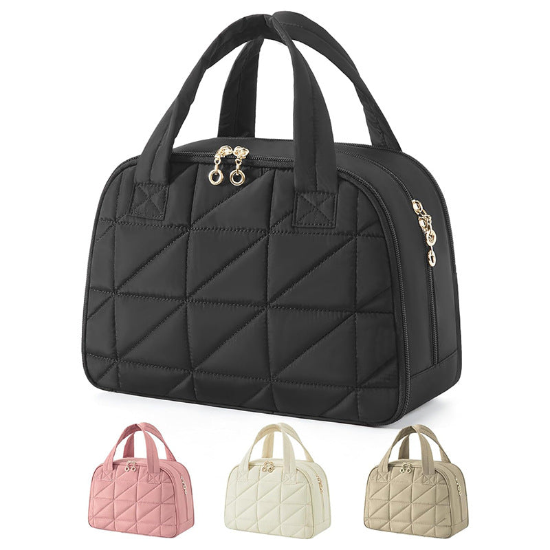 Large Capacity Travel Toiletry Bag with Wide Opening - Puffy Nylon Makeup Organizer