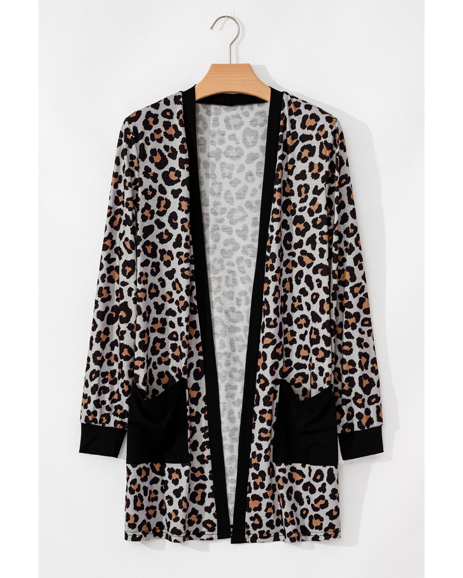 Black Leopard Patched Pocket Open Front Cardigan - XL