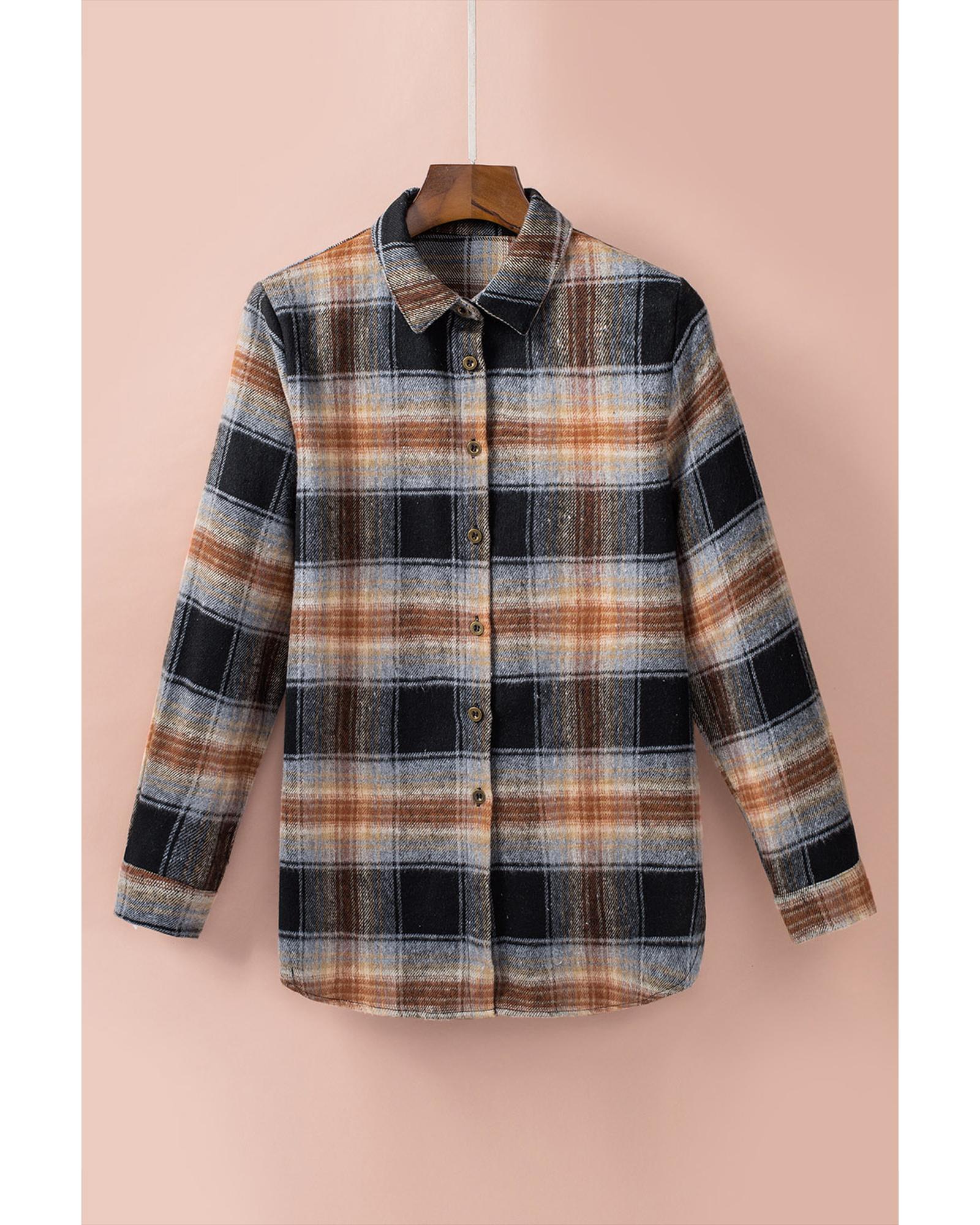 - Oversize Rounded Hem Plaid Shacket with Slits