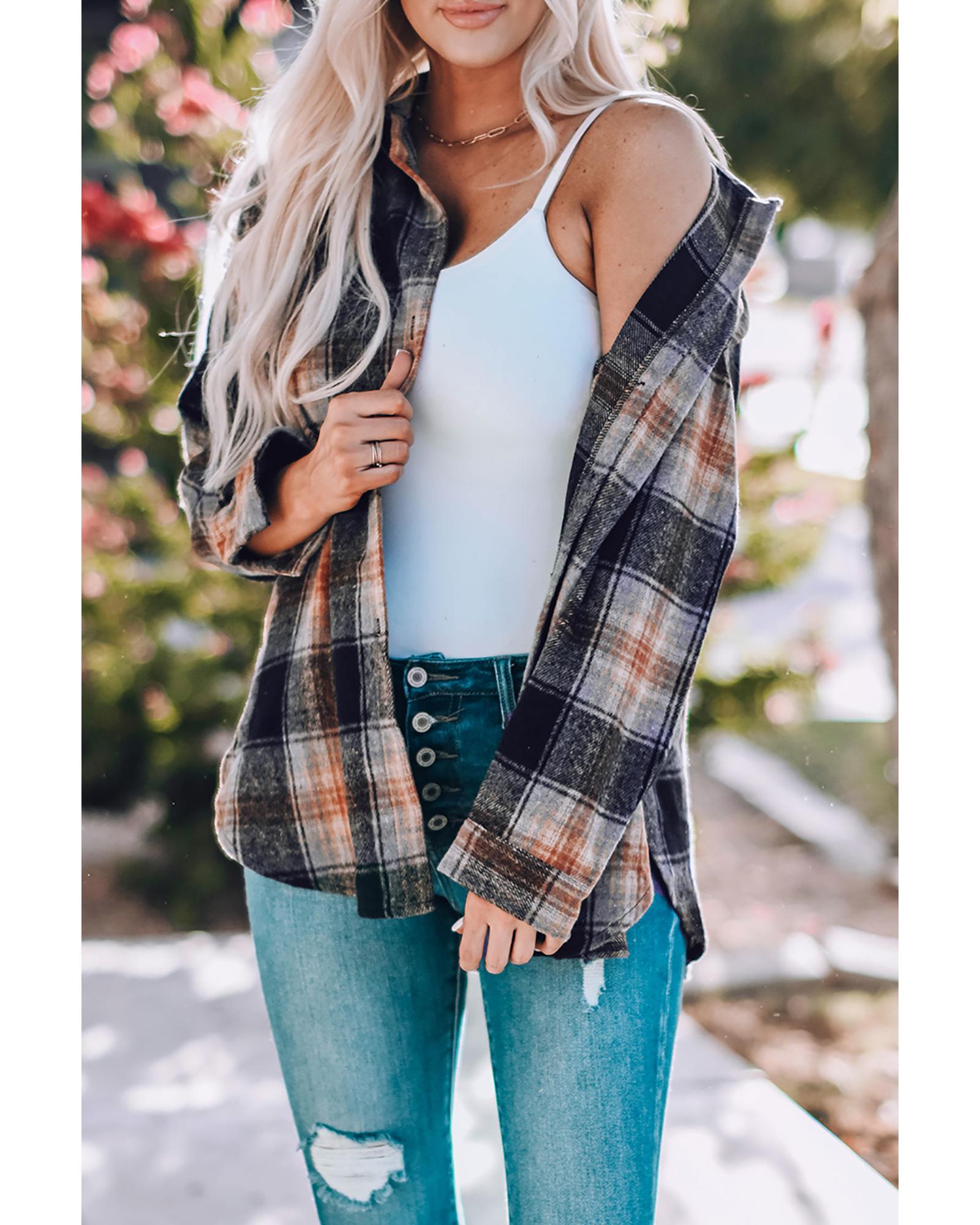 - Oversize Rounded Hem Plaid Shacket with Slits