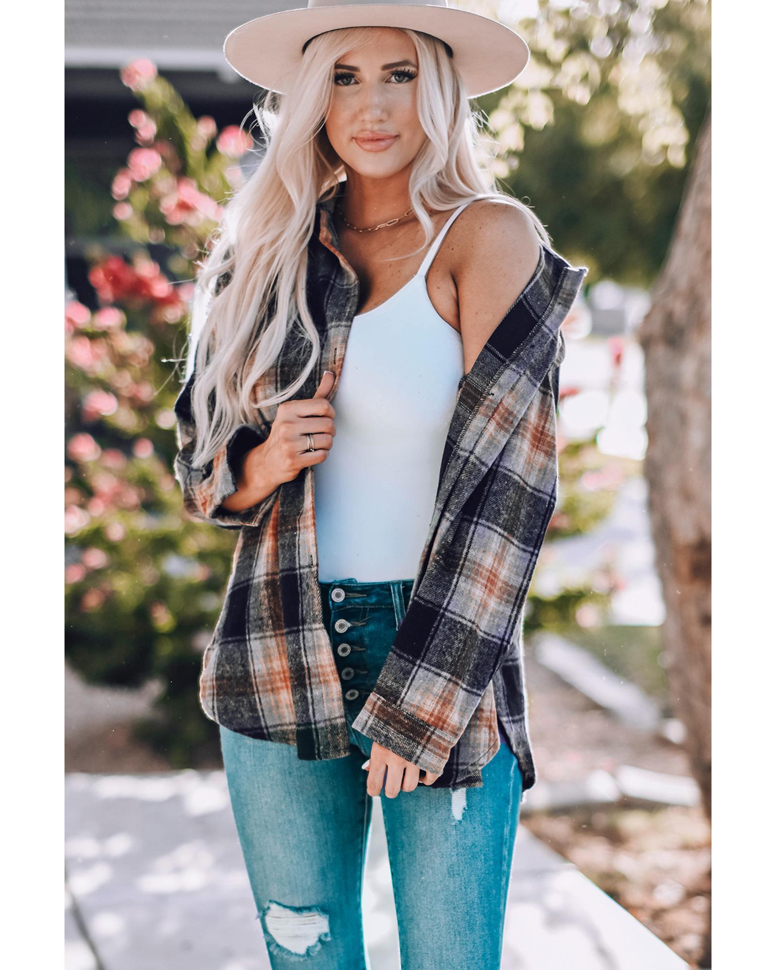 - Oversize Rounded Hem Plaid Shacket with Slits