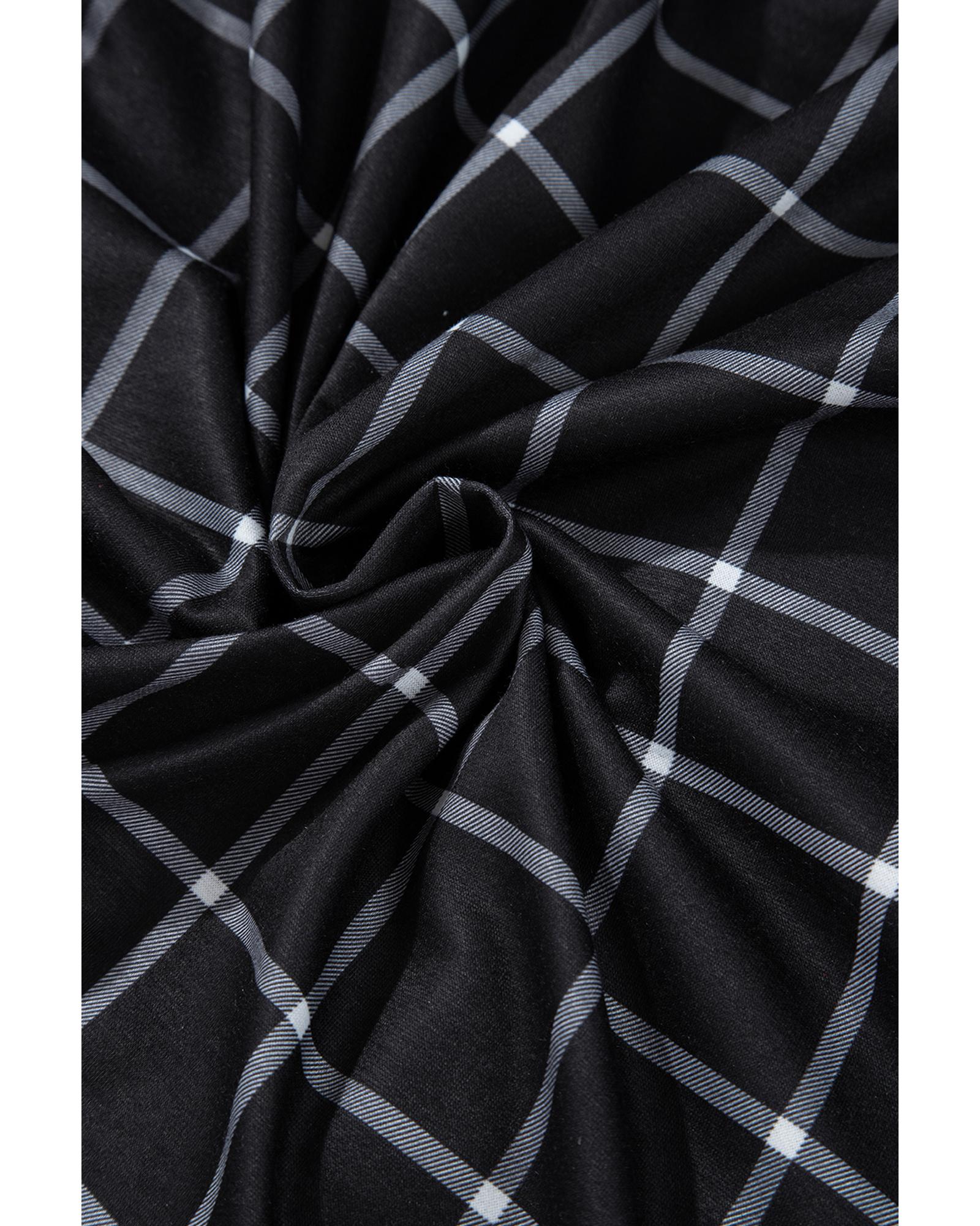 Black Plaid Colorblock Edge Open Cardigan with Pocket - M