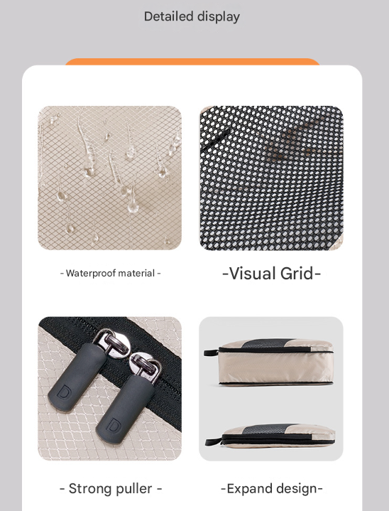 - Compression Feature: On Large and Medium Clothing Cubes via dual zipper system