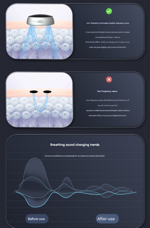 - Gentle & Effective Pulse Intervention: The device uses a carefully modulated pulse that works on a deeper muscular level, promoting smoother breathing without causing a painful or jolting sensation, allowing you to remain asleep.