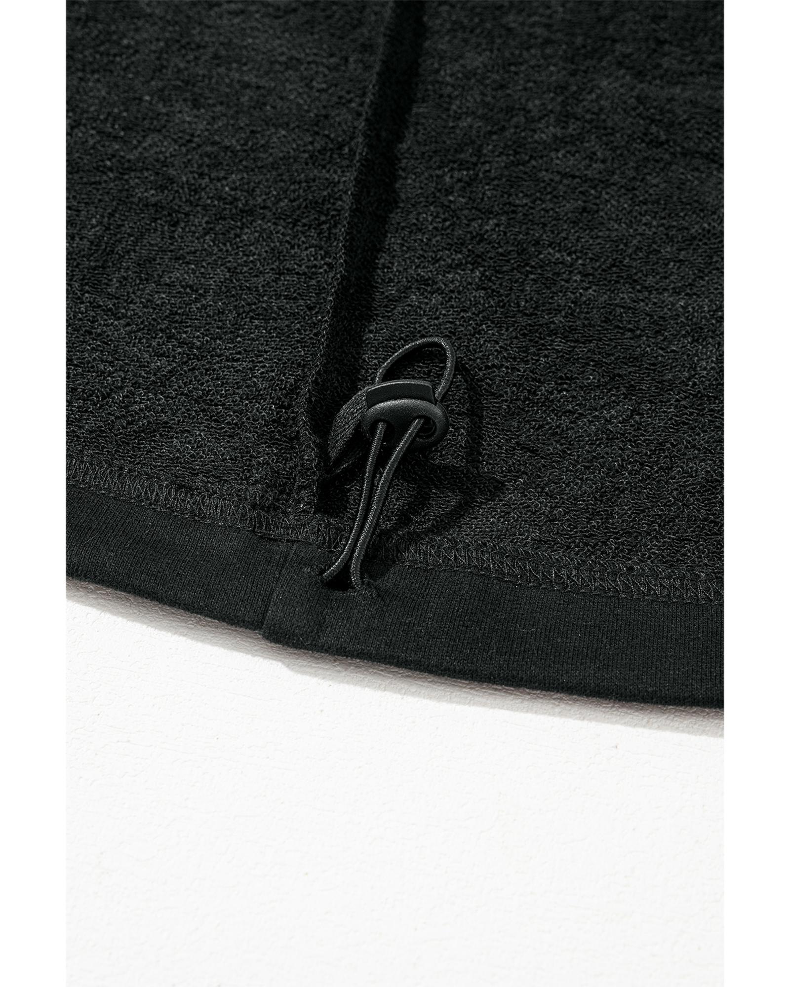 Black Solid Kangaroo Pocket Half Zipper Oversized Hoodie - S