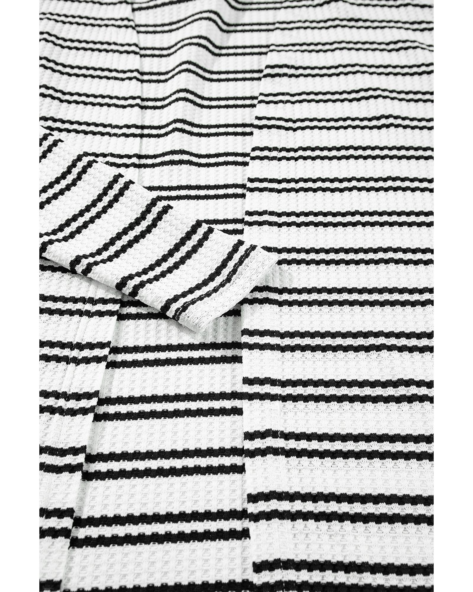 Black Stripe Print Open Front Duster Cardigan - M