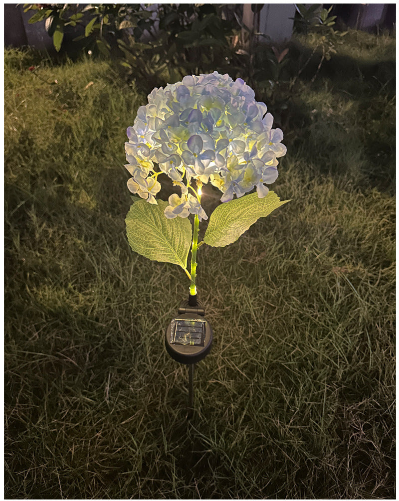 Add a touch of effortless elegance and a warm, inviting glow to your outdoor spaces with our Solar Powered Hydrangea Flower Light. These stunningly realistic flower stakes are designed to mimic the natural beauty of hydrangeas during the day and transform your garden, patio, or walkway into a magical landscape at night.