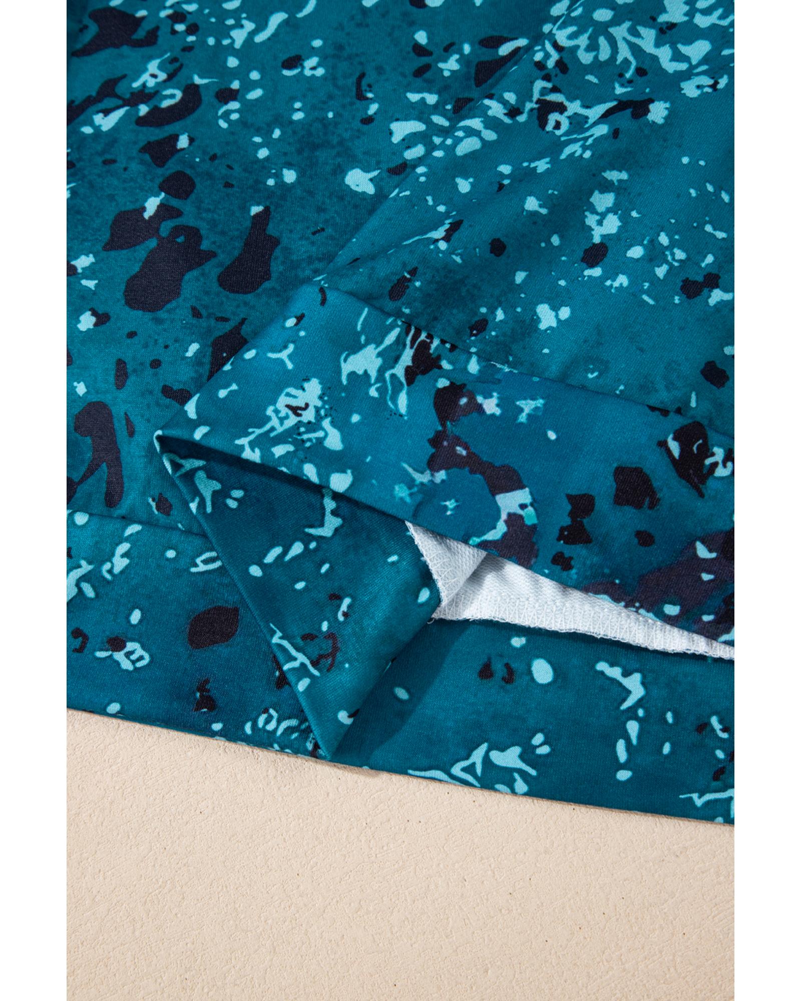 Blue Tie Dye Cow Color Block Pullover Sweatshirt - S
