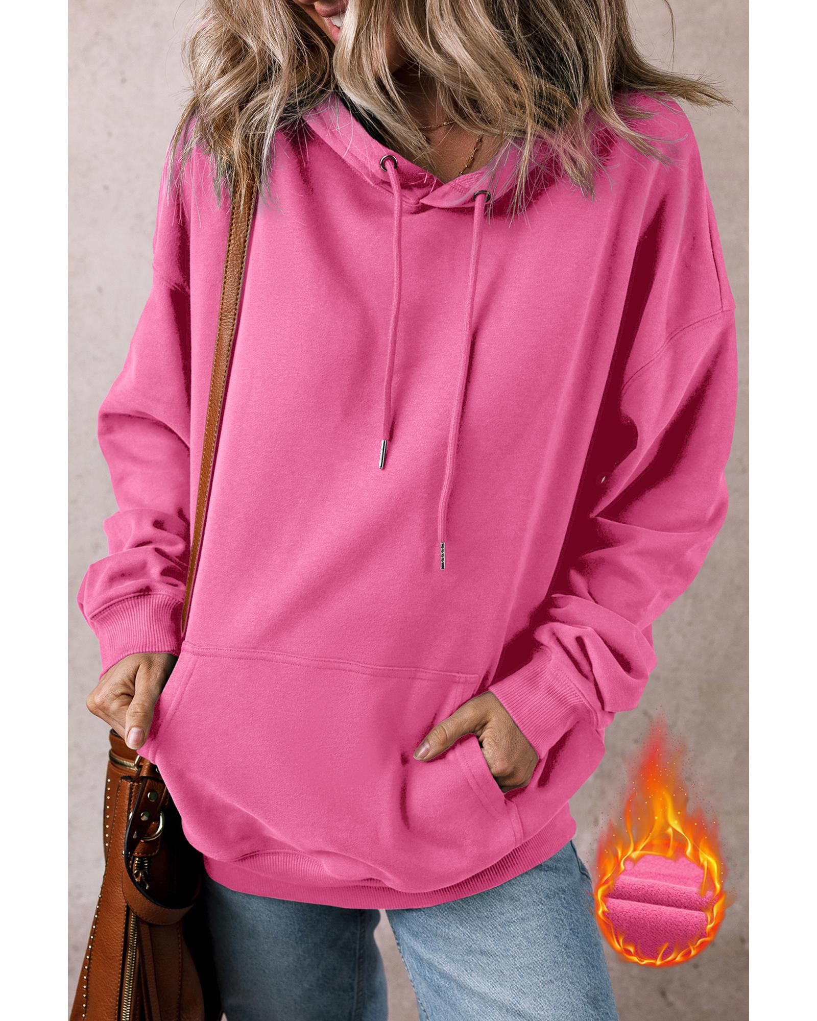 Bonbon Fleece Lined Kangaroo Pocket Drawstring Chunky Hoodie - L